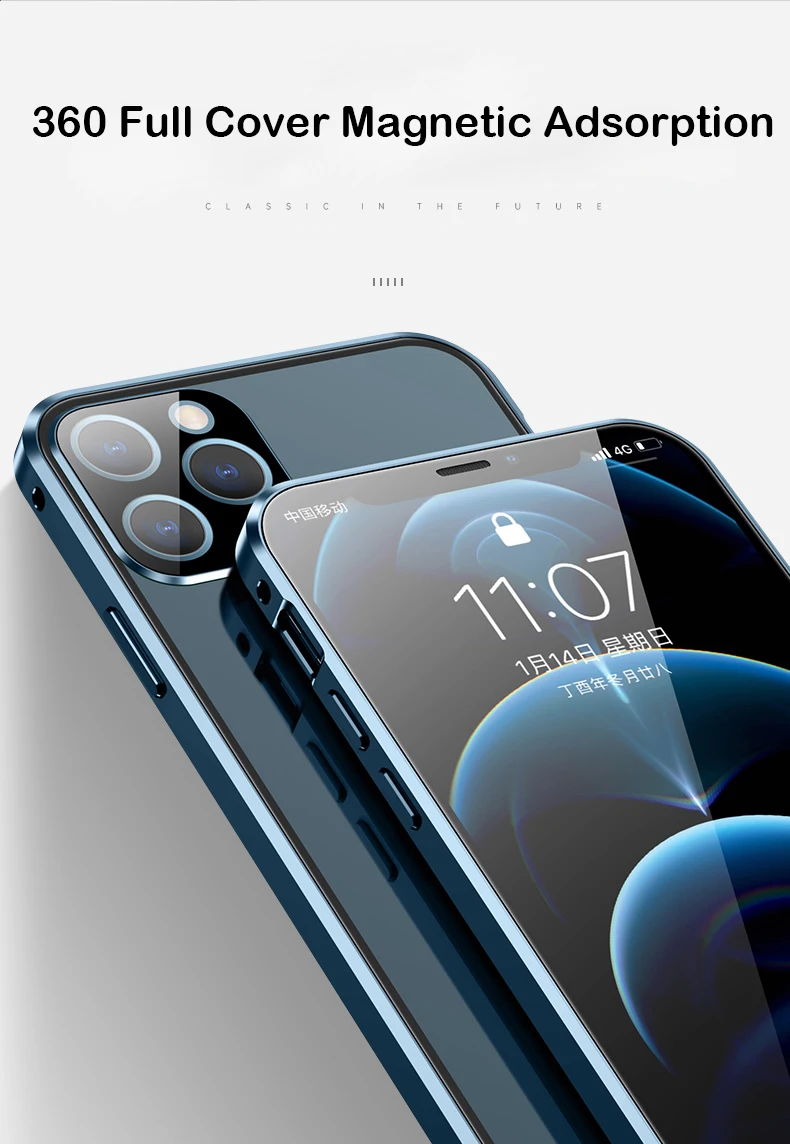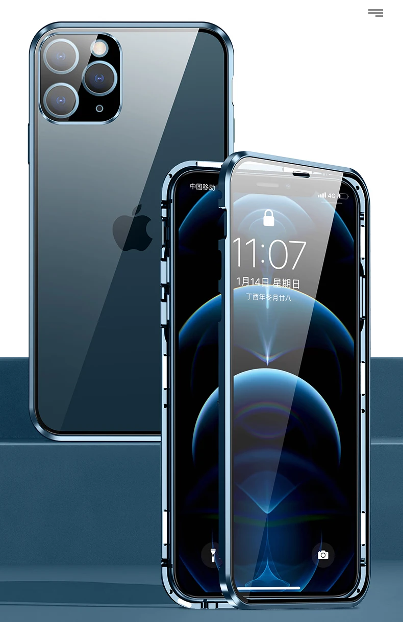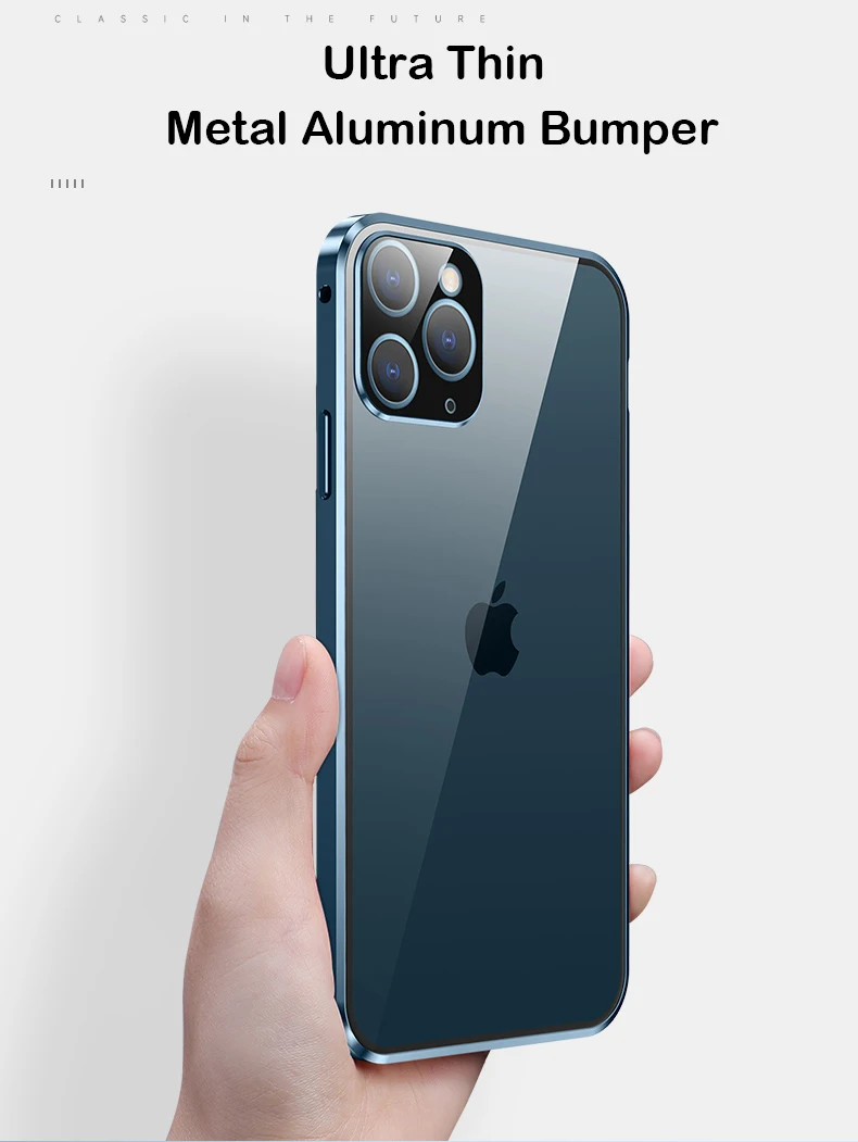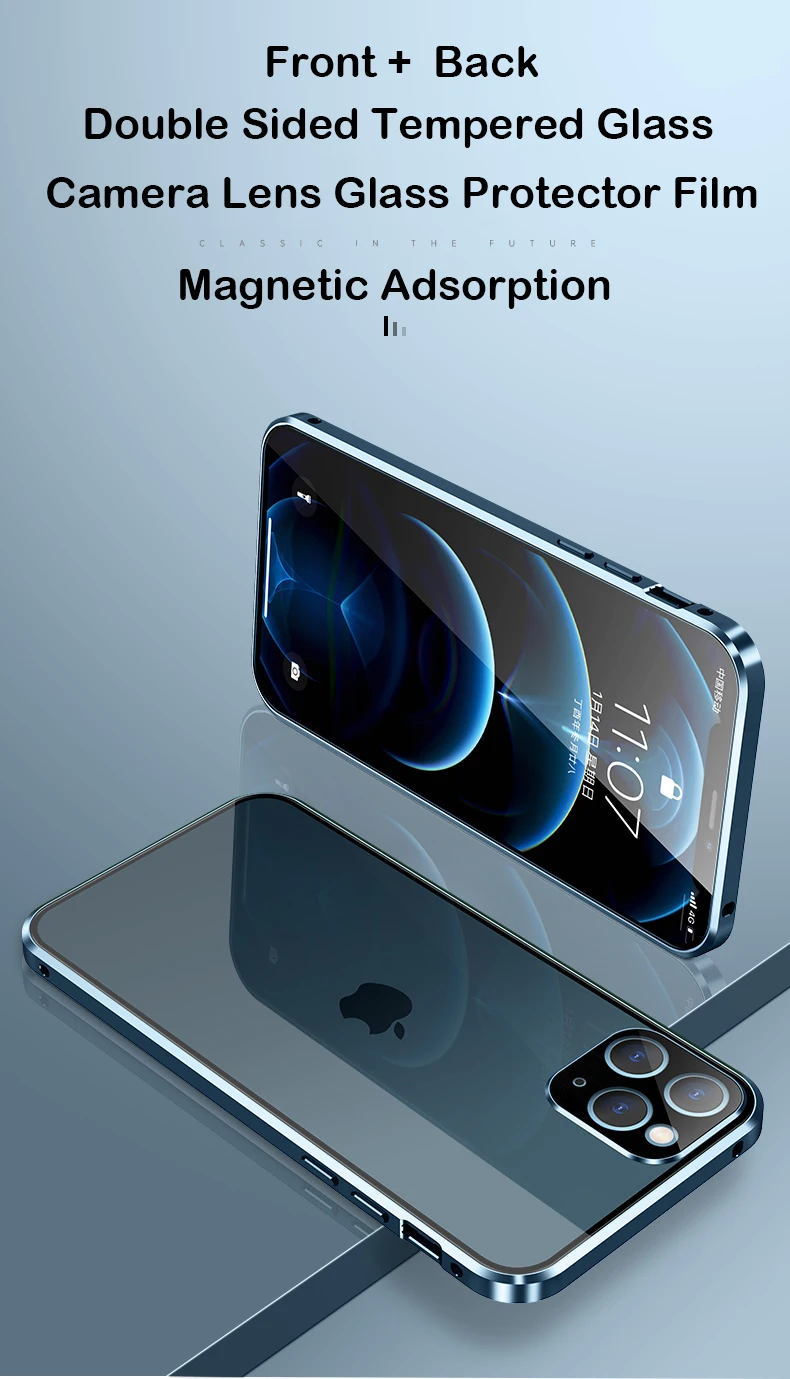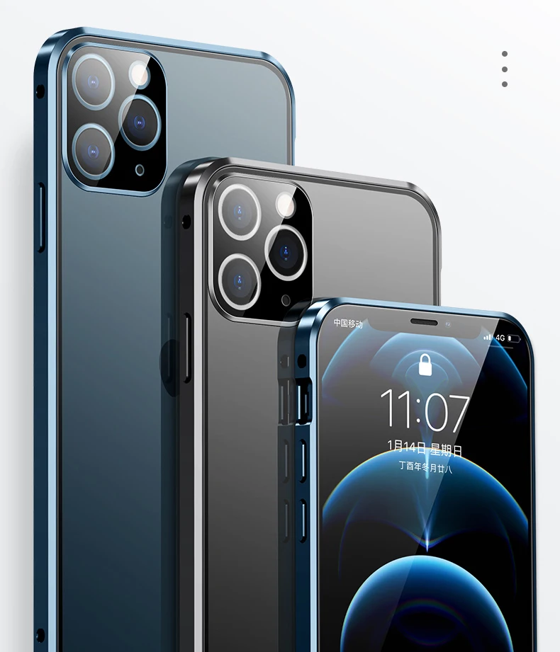 Магнитный чехол с полным покрытием 360 градусов для iPhone 12 Pro MAX 13 Mini 11Pro, роскошный металлический чехол-бампер, стеклянная Защитная пленка для объектива камеры