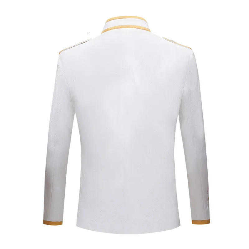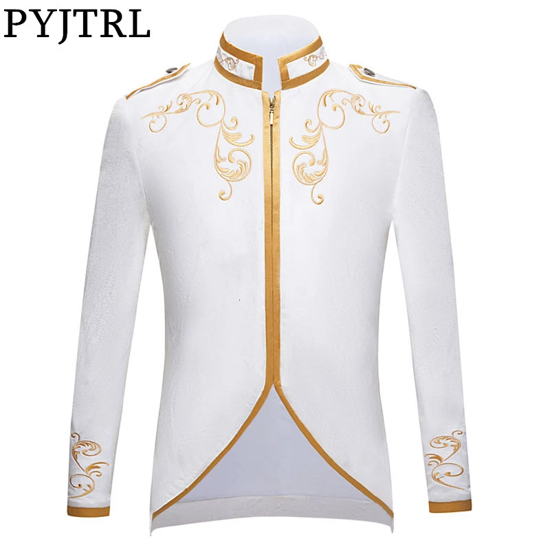 PYJTRL Новый британский стиль Королевский принц чистый белый бархат золотая вышивка блейзер для свадьбы жениха приталенный костюм куртка певицы пальто