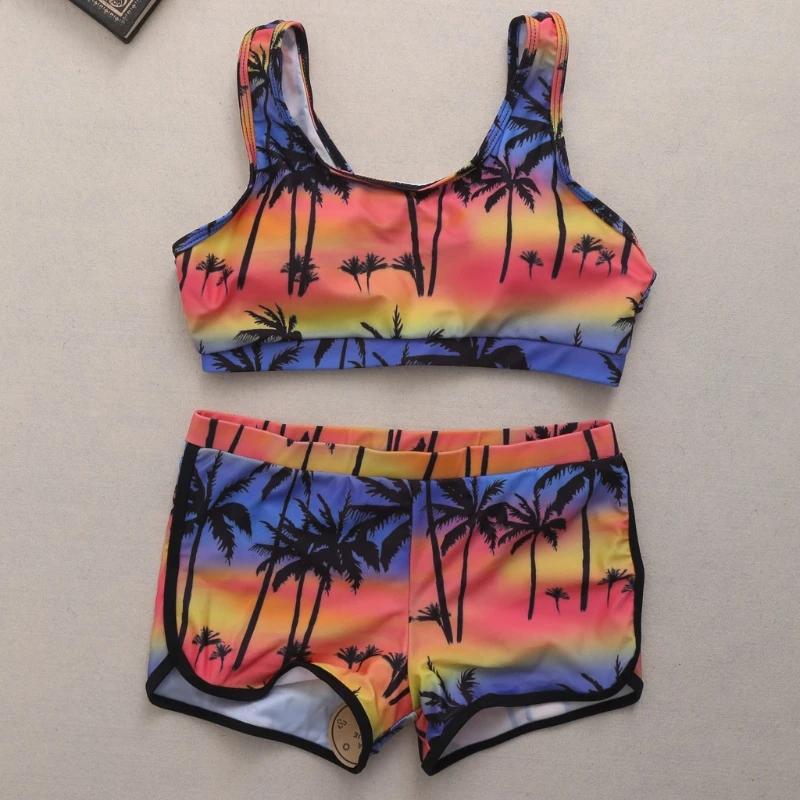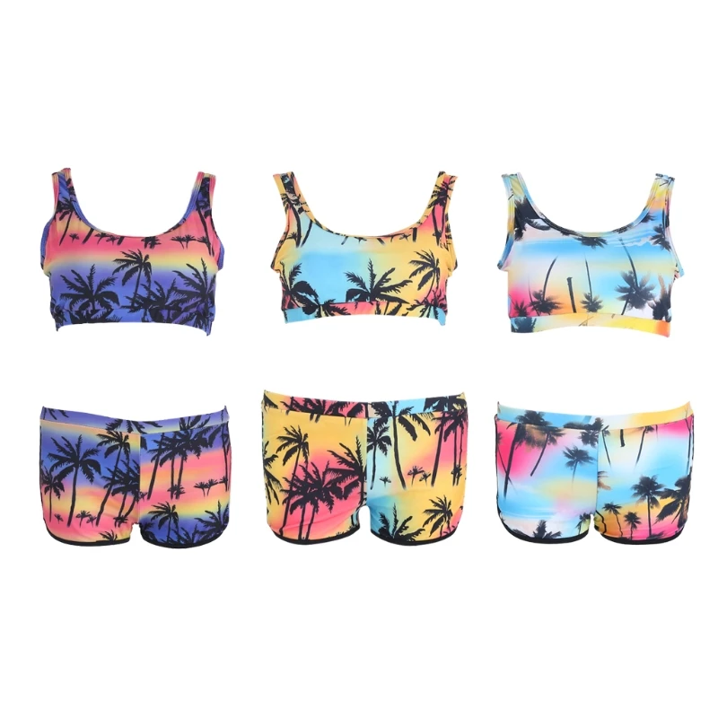 Сексуальный женский короткий топ, шорты с высокой талией, Тропическое бикини, пляжная одежда, купальник