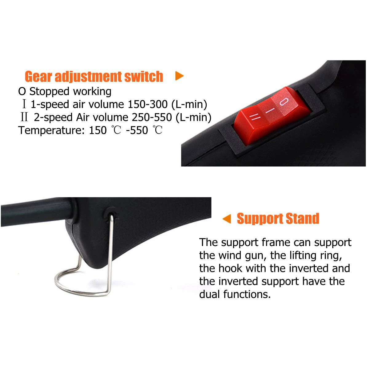 Фен промышленный, 2000 Вт, 220 В, с двойным контролем температуры
