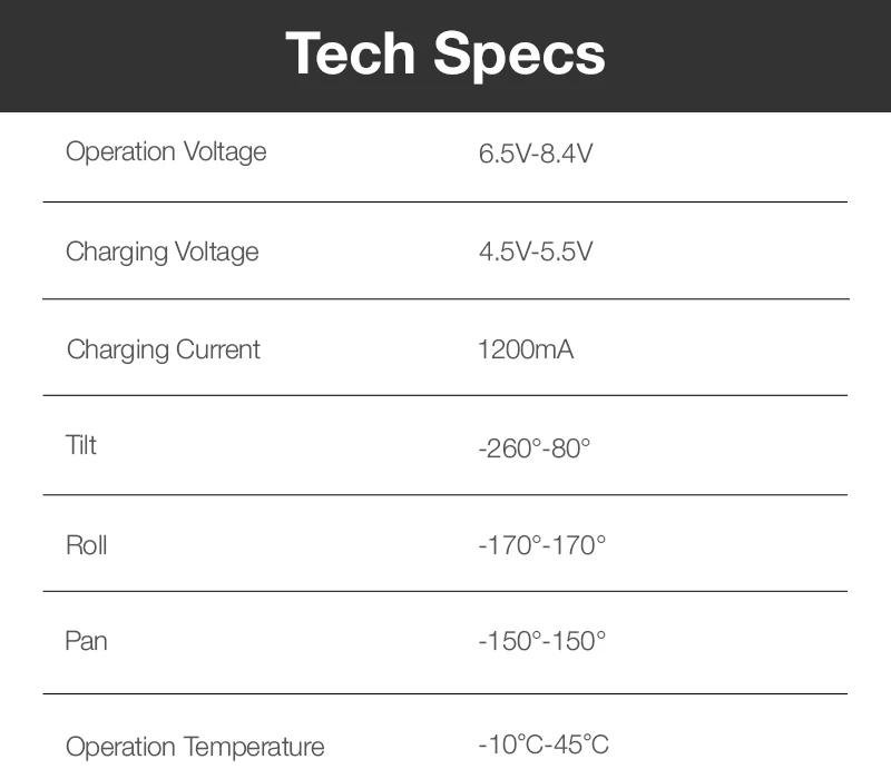 Трехосевая конструкция для невероятно стабильной и плавной съемки.
