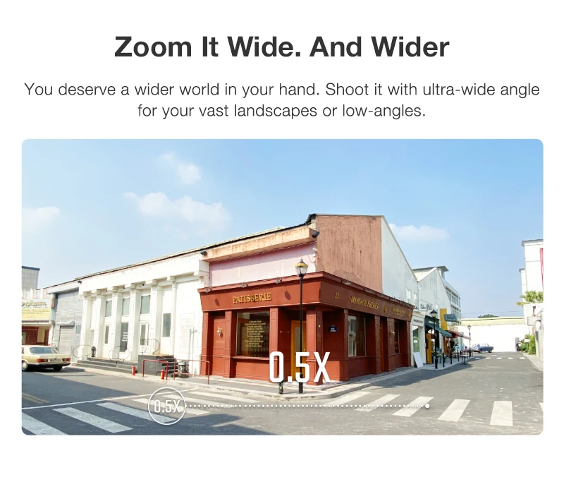 Уместите весь необъятный мир в своей руке. Снимайте со сверхшироким углом обзора, чтобы охватить громадные ландшафты или нижние ракурсы. * Функция доступна только в iOS и на смартфонах с поддержкой широкоугольной съемки.