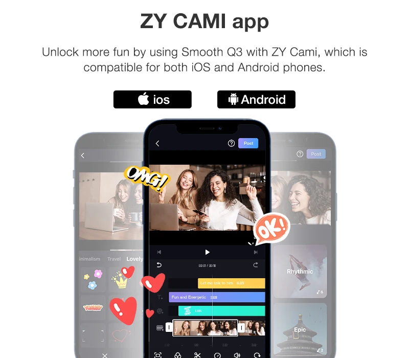 Откройте для себя новые возможности, используя Smooth Q3 с приложением ZY Cami, совместимым с телефонами на базе iOS и Android.