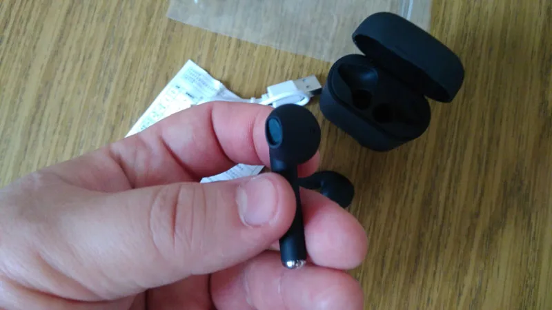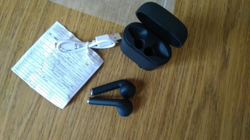 Наушники шли слишком долго!!! Почти 2 месяца ожидания! На ощупь приятные, чехол открывается хорошо. Наушники из него вытащить очень сложно... это большой минус, зарядка идёт, но полностью ещё не заряжала. К айфону подключаются без проблем. В комплекте прилагается шнур для зарядки. Звук не очень, но я думаю для такой цены это даже не плохо. Можно разговаривать по ним, но собеседник меня не слышит... так что думайте. Если хотите просто понять нужны ли вам беспроводные наушники- то закажите и проверьте, но лучше сразу покупать хорошие наушники)