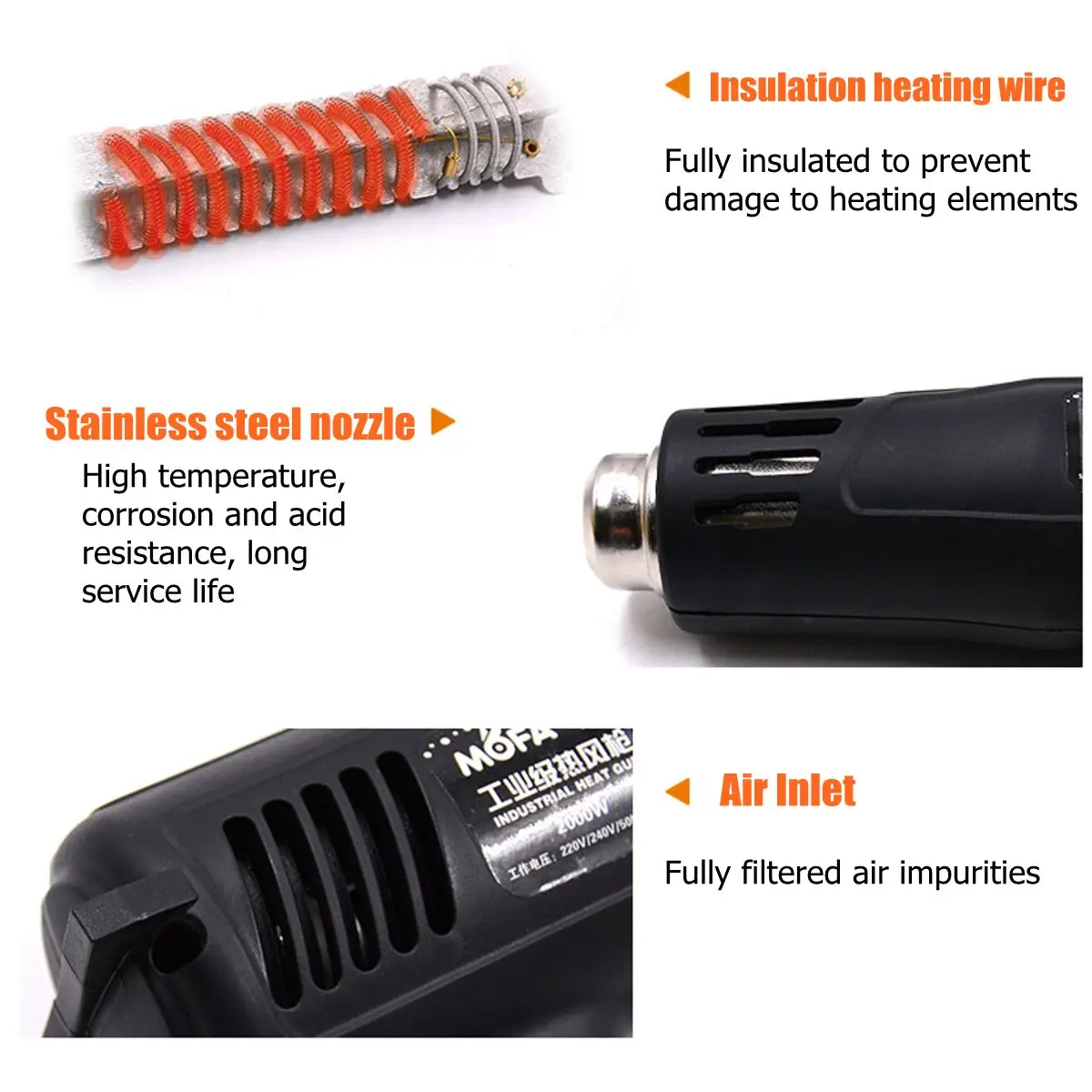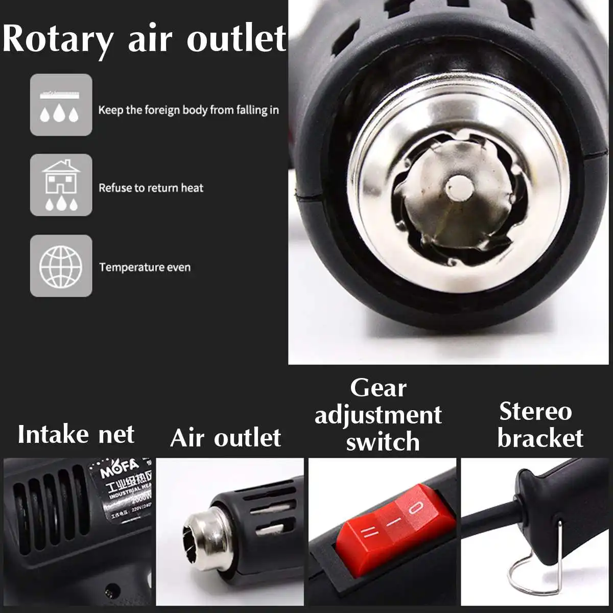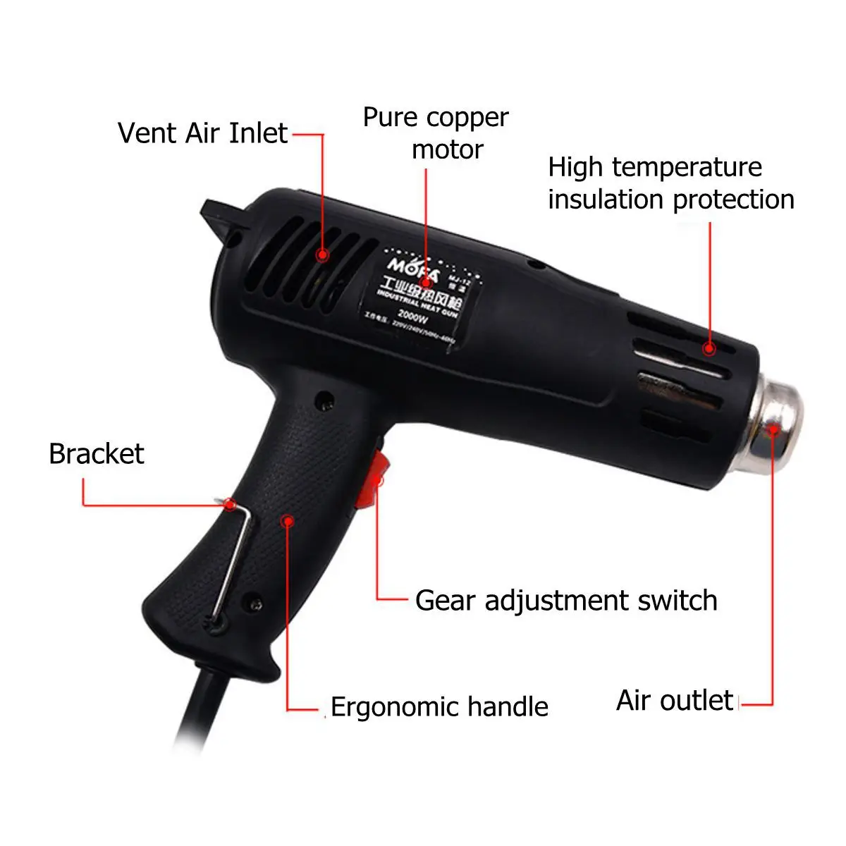 2000 Вт 220 В промышленный электрический горячий воздух Регулируемый терморегулятор воздушный поток тепловой пластиковый фонарь для инструментов из фольги автомобиля