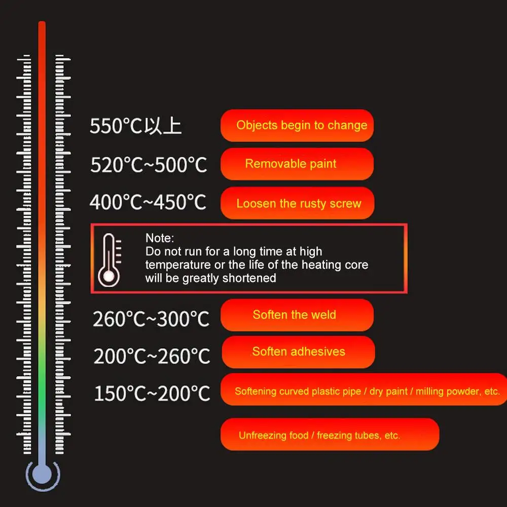 6. Может быть применен в пайки, сварки ПВХ, формовки, сушки, термоусадочной установки, зачистки краски и т. Д.