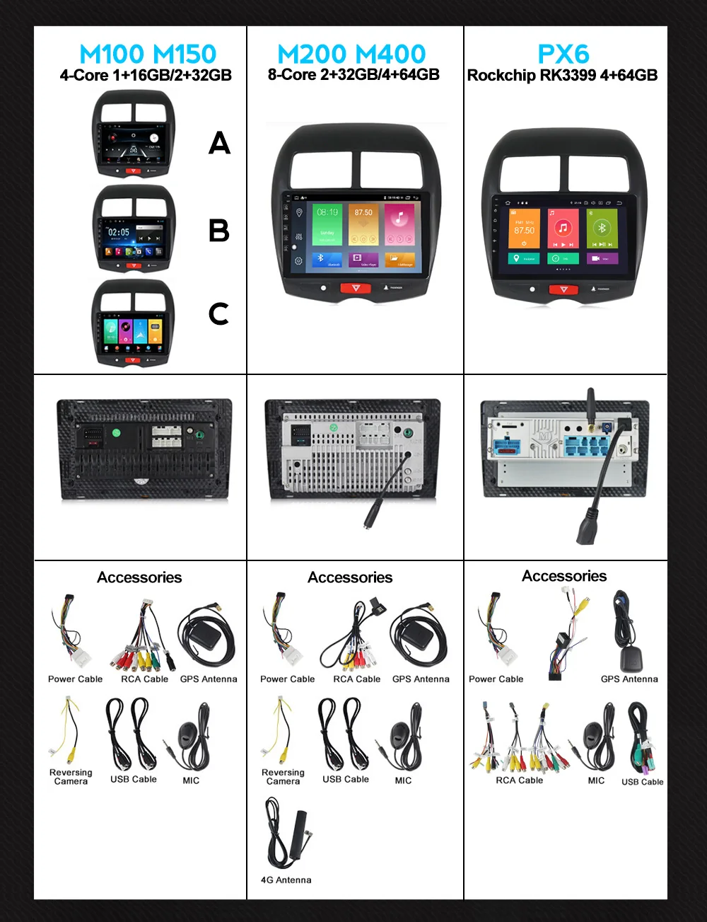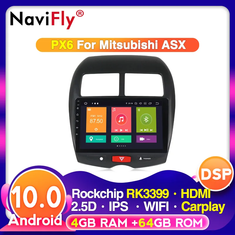 Автомагнитола для Mitsubishi ASX 2010-2018, 4G LTE, IPS, DSP, Android 10, GPS-навигация, без dvd