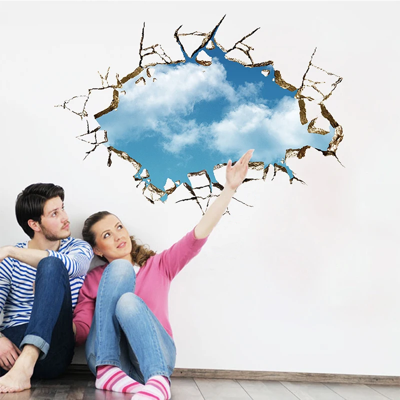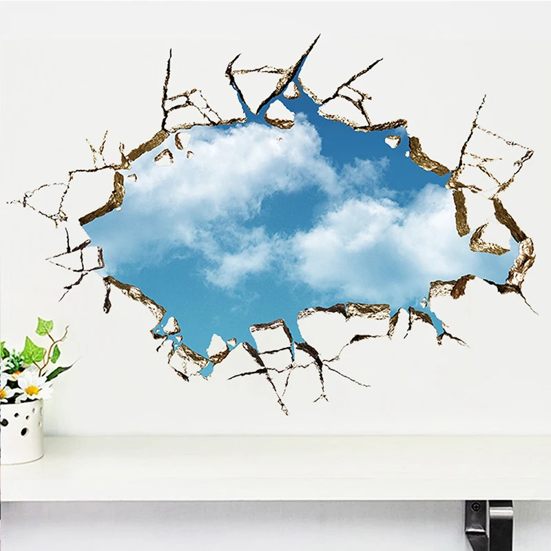 3d наклейка Ceative Broken Wall Blue Sky стикер s для спальни, гостиной, потолка, пола, декора стен, Наклейки на стены из ПВХ, художественные фрески