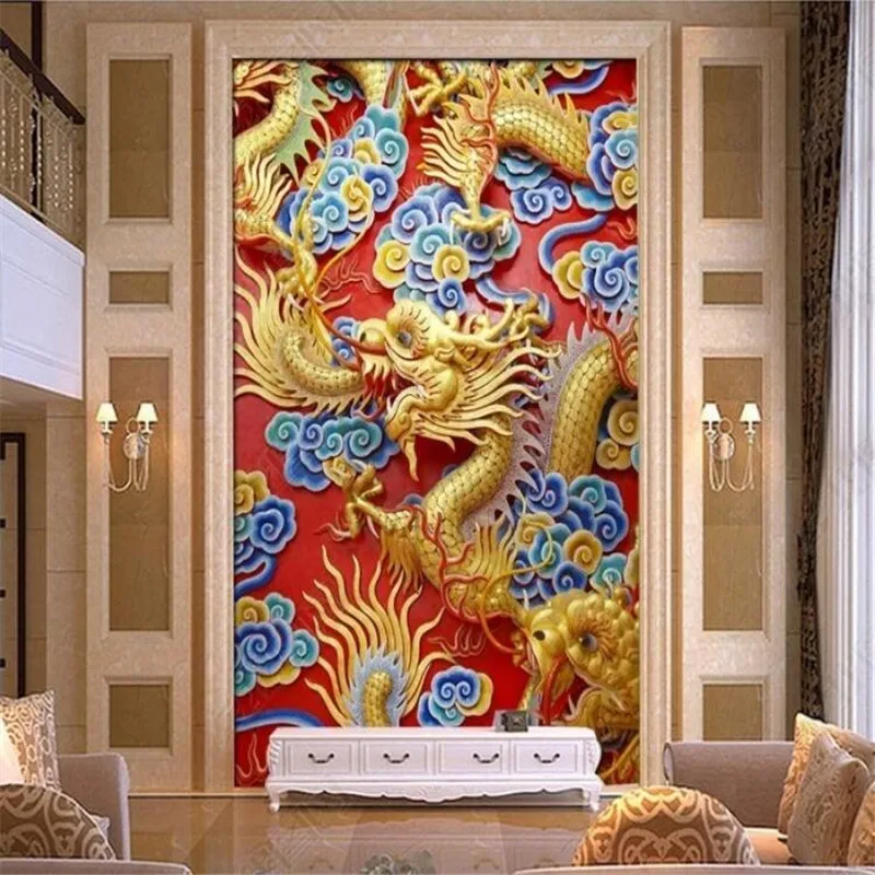 Пользовательские китайский стиль 3D рельефный дракон фото обои для роскошного домашнего декора отель ресторан вход Фреска для коридора обои 3D