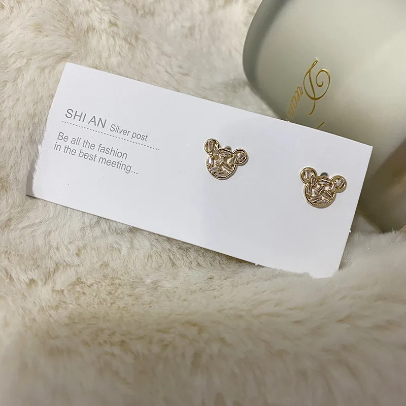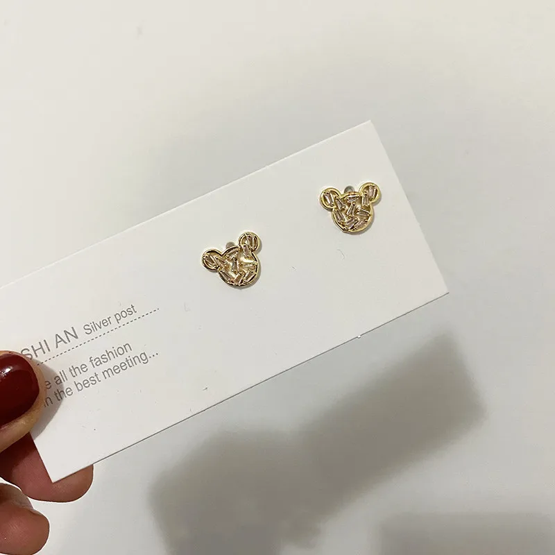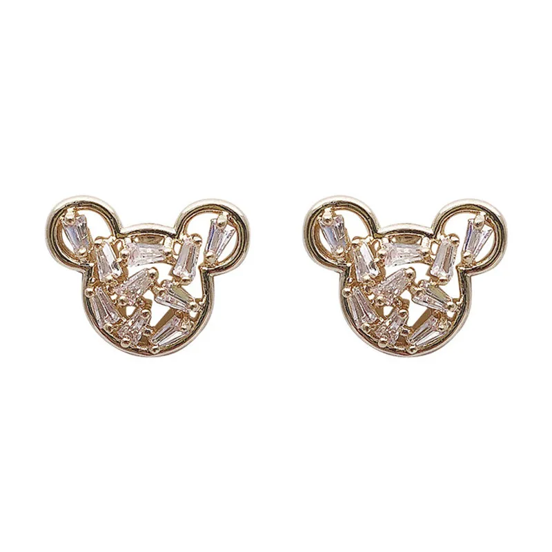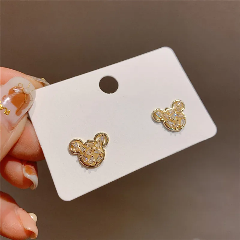 Женские серьги с маленькими кристаллами, милые блестящие серьги-гвоздики с героями мультфильмов, ювелирные изделия, 2020