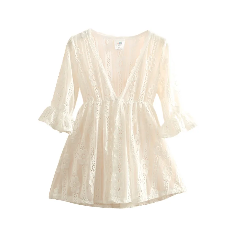 Длинный летний Кардиган для девочек 3, 4, 6, 8, 10, 12 лет, с V-образным вырезом, солнцезащитный, с защитой от ультрафиолета