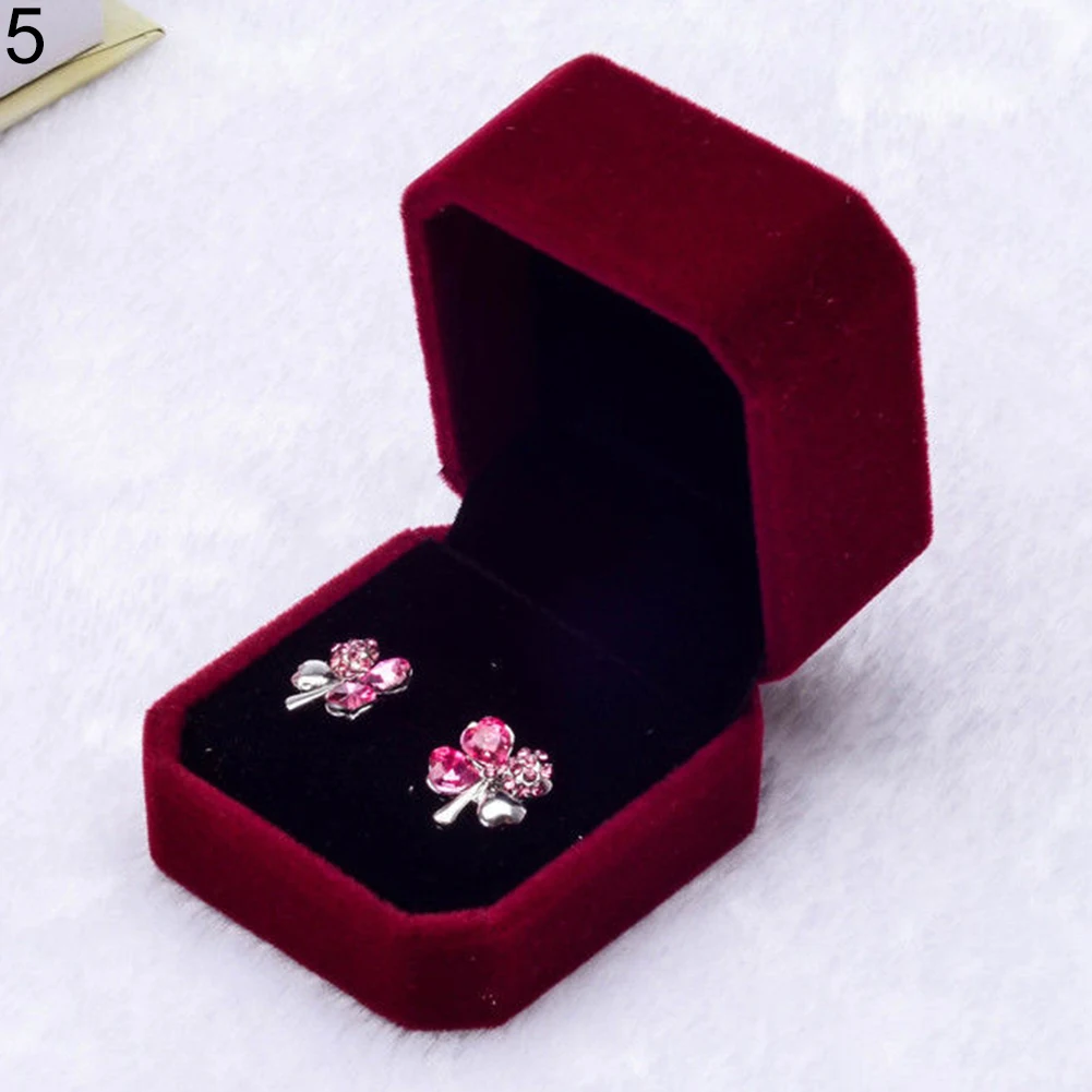 Бархатная шкатулка для украшений, Подарочный чехол для хранения подвесок, колец, серег-гвоздиков, обручальных, синего и черного цвета