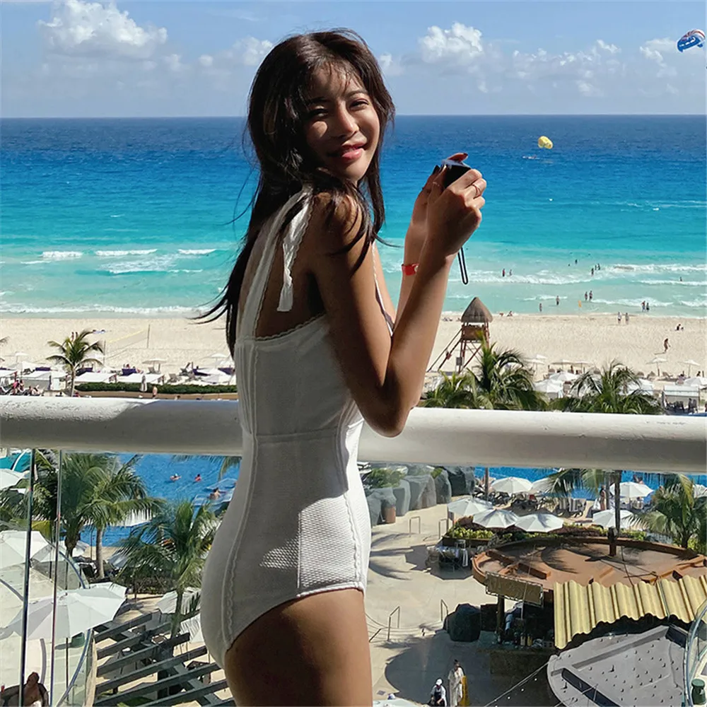 Цельный купальный костюм в Корейском стиле, Женская однотонная одеж...