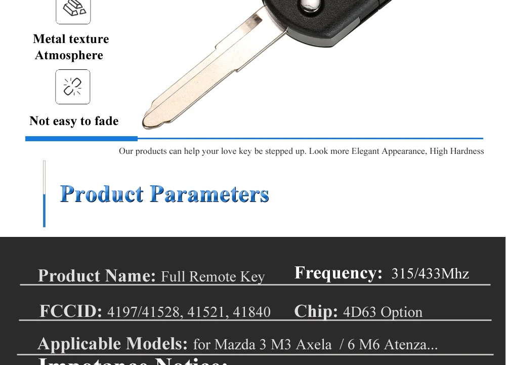 Качество ключа хорошее, товар пришол быстро, но к сожалению к машине не прописывается мазда 6gg.