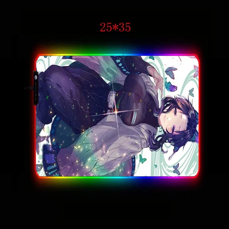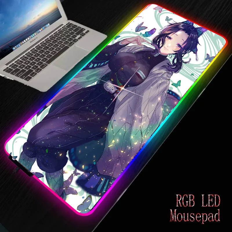 Коврик для мыши MRGBEST с аниме девушкой, рассекающей демонов, киметасу No Yaiba RGB, светодиодный коврик для мыши с подсветкой для клавиатуры, Настольный коврик, коврик для мыши