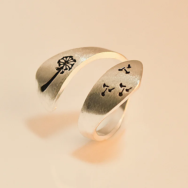 925 пробы серебро уникальный Рок панк кольцо серого цвета, принт в виде одуванчиков, не связанные с основной простой указательный палец кольцо для Для мужчин Для женщин Для мужчин ювелирные изделия для девушек, кольцо