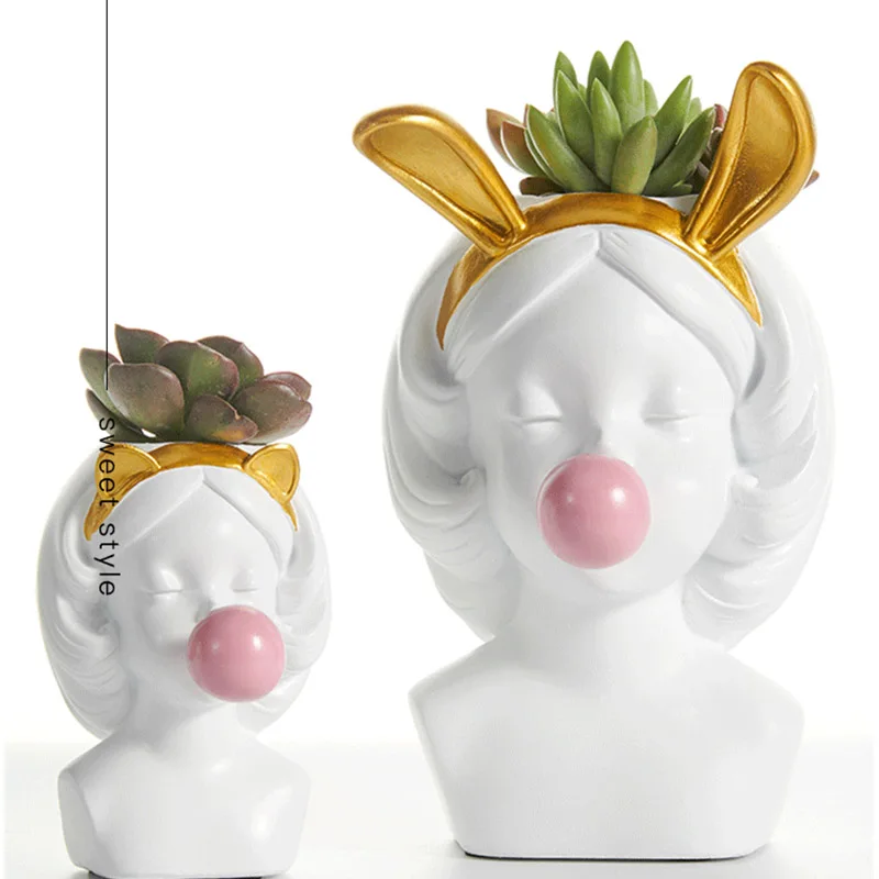 2020 Скандинавская креативная ваза маленького размера из смолы, кот, кролик, девушка, пузырьковая жвачка, Современное украшение для дома, цветочный горшок, свадебное художественное украшение