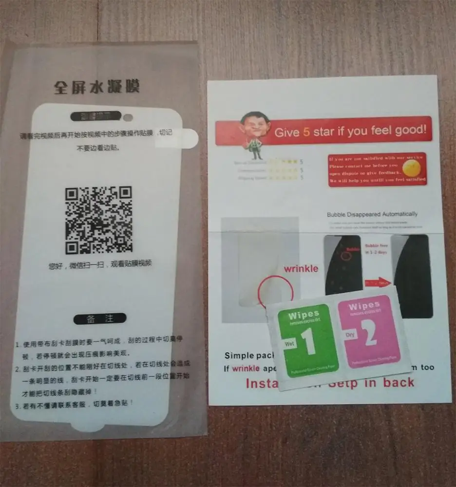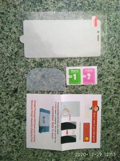 товар пришел быстро,в почтовый ящик, выглядит как обычная плёнка для экрана.в комплекте инструкция,разглаживалка, жидкость и салфетка,ну и сама плёнка.пока не клеил,оставил на потом.по размеру на рэдми 6а подошла идеально.