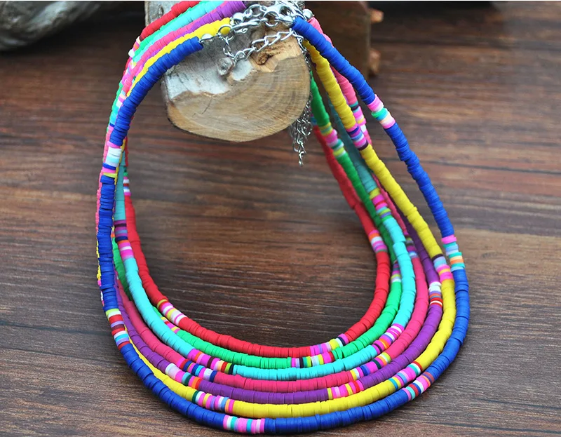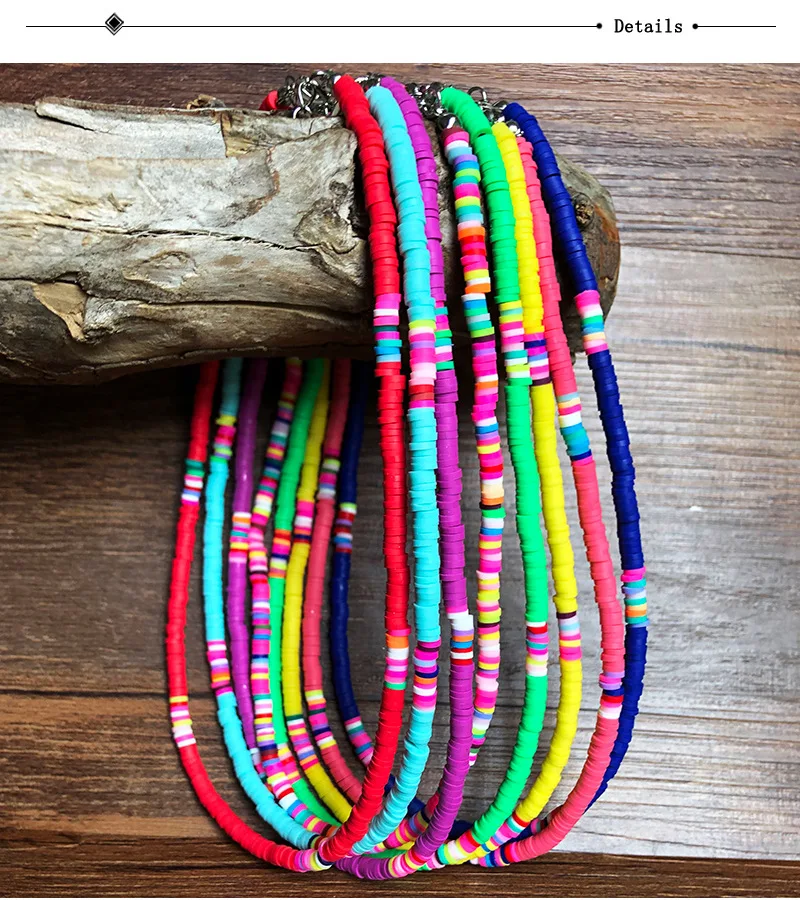 Чокер из мягкой глины для женщин, модное ожерелье из мягкой керамики в богемном стиле, регулируемый цветной воротник из глины, Пляжная бижутерия