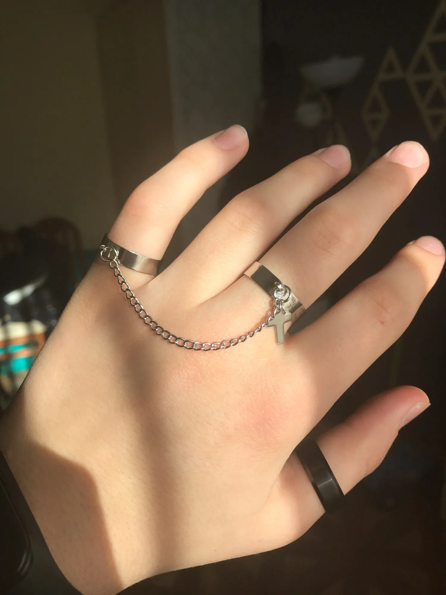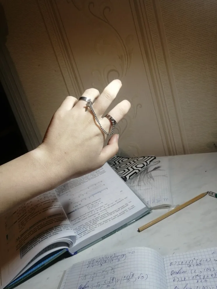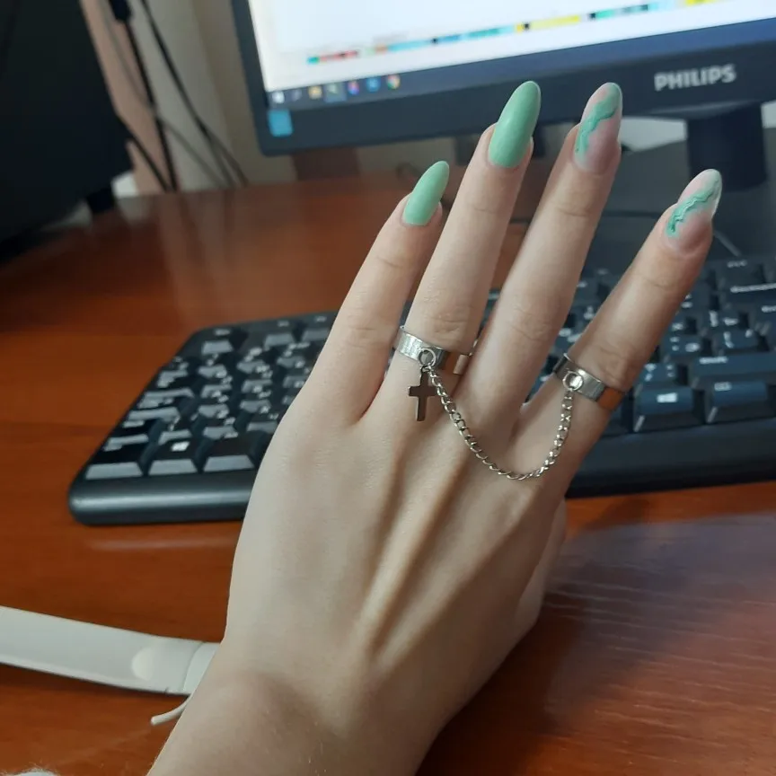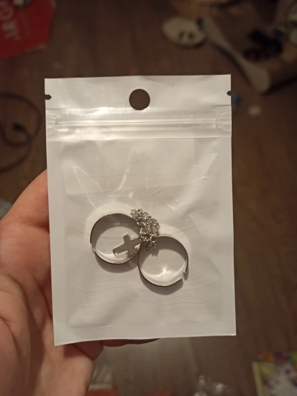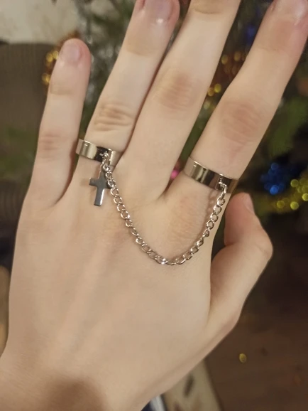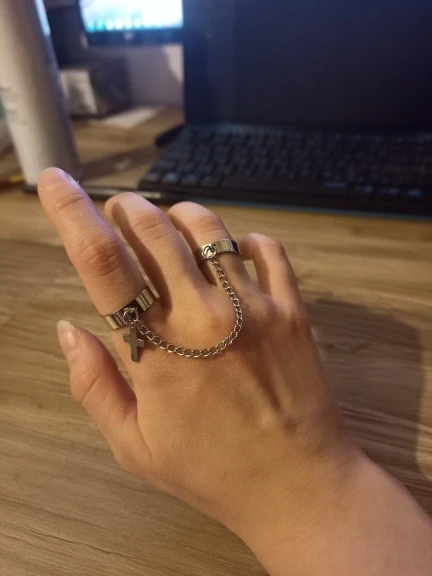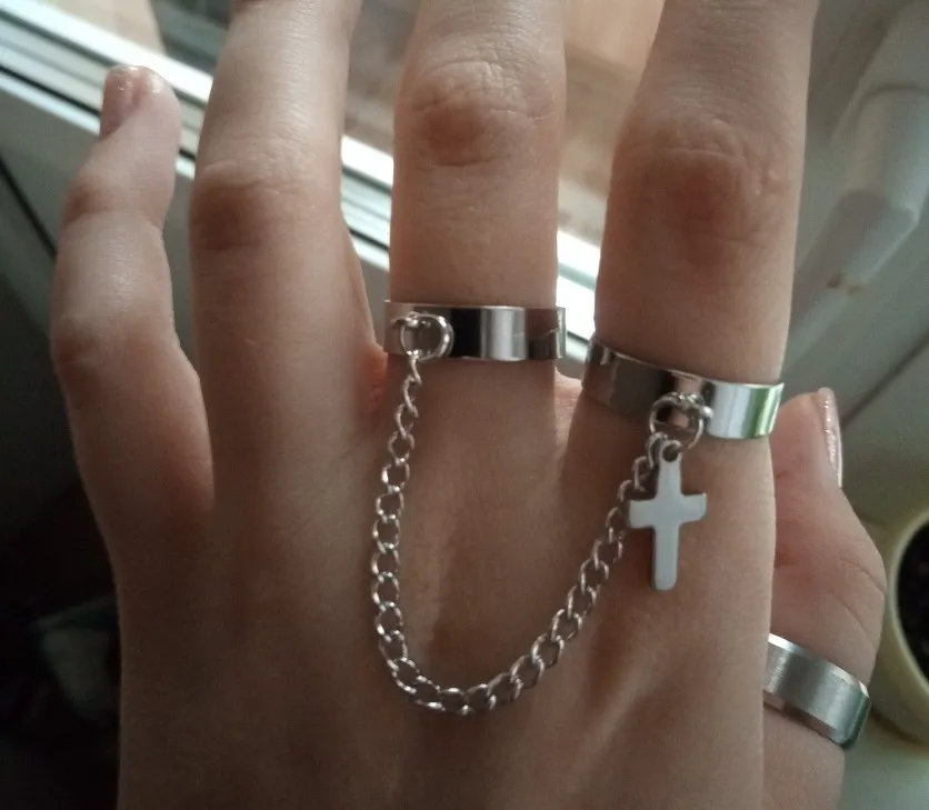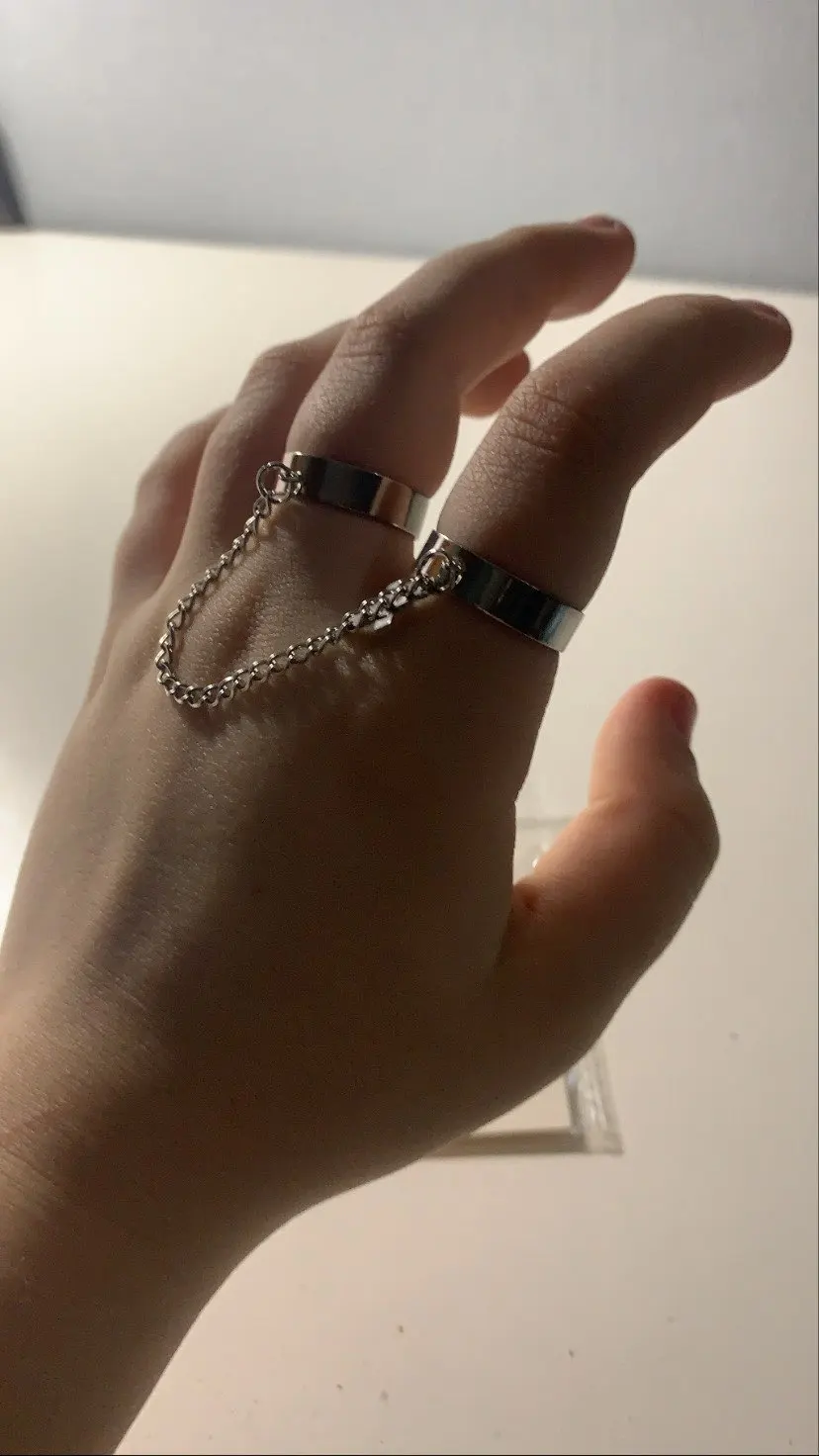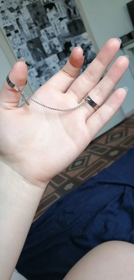 Хорошие кольца, размер изменяется, только цепочка не прям такая как на фото, более редкая и пластиковая, но выглядит ахуенно