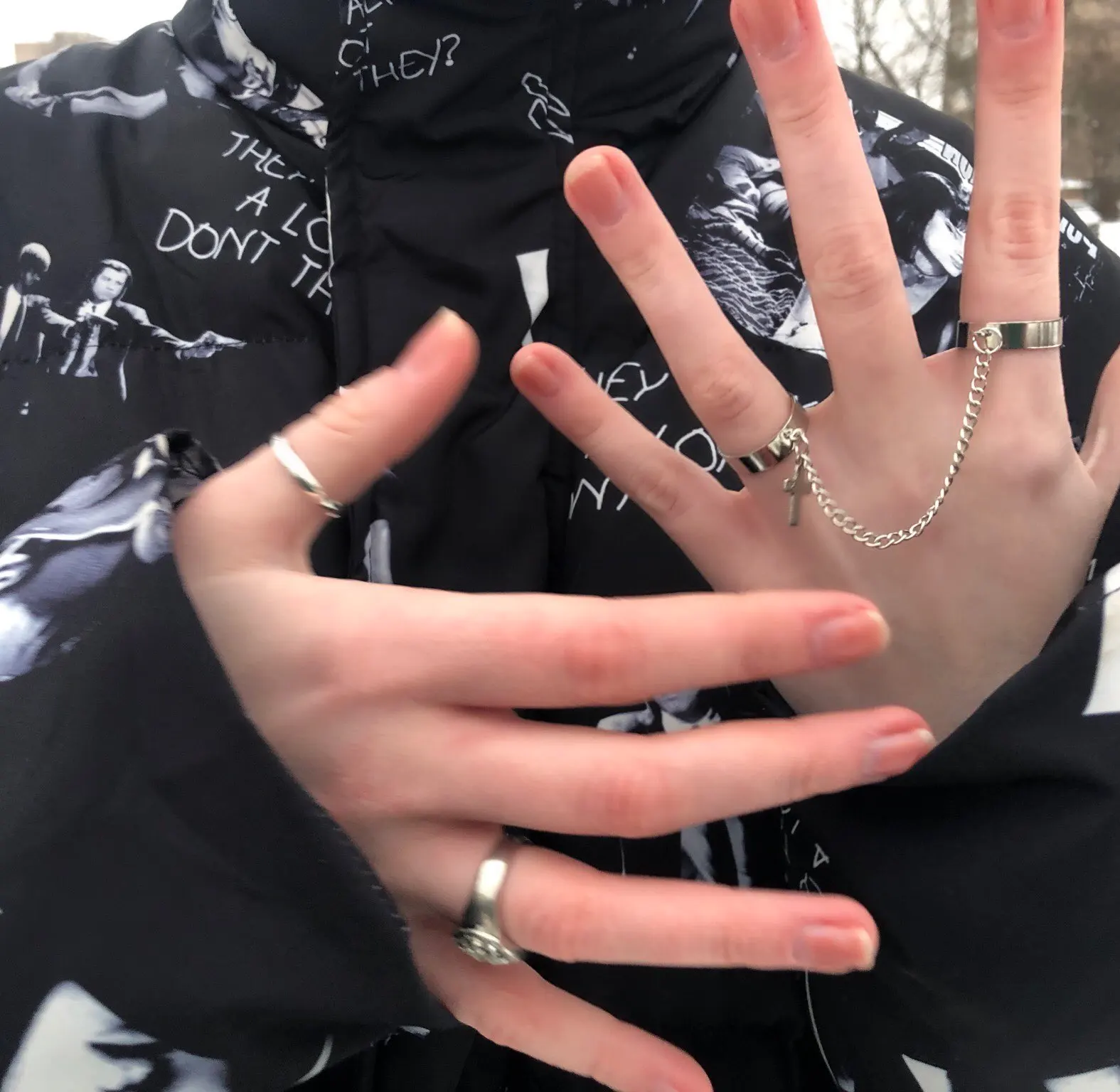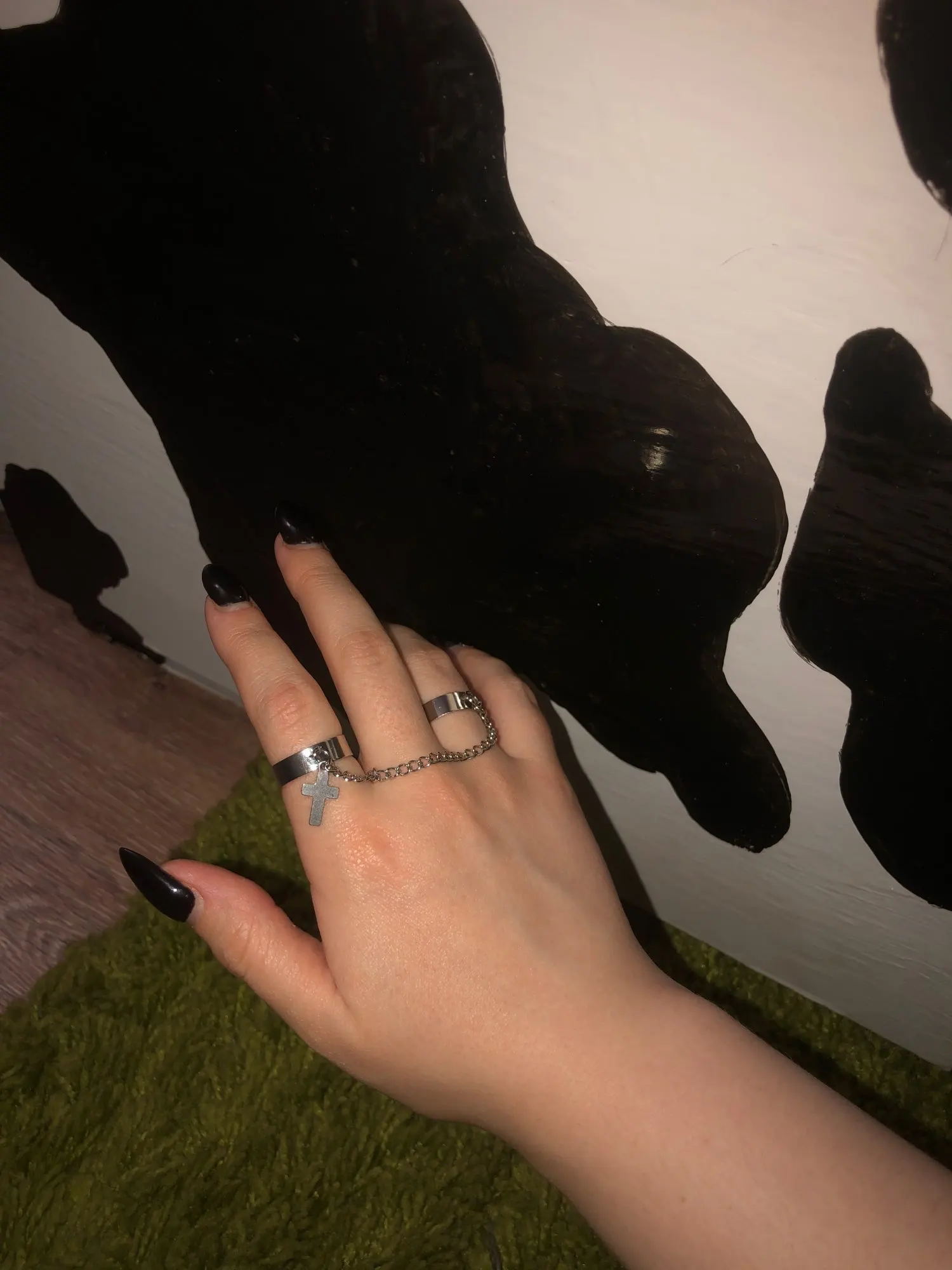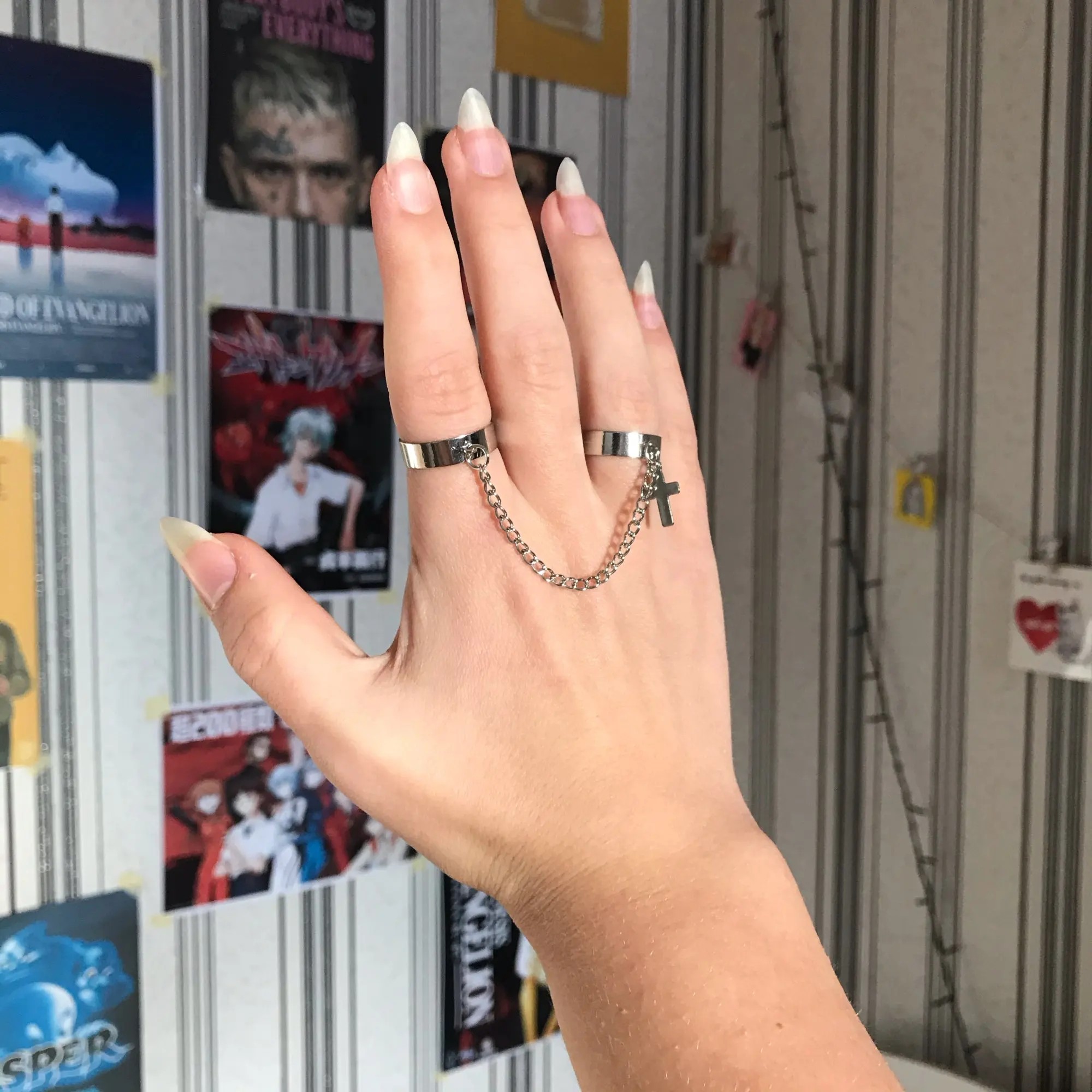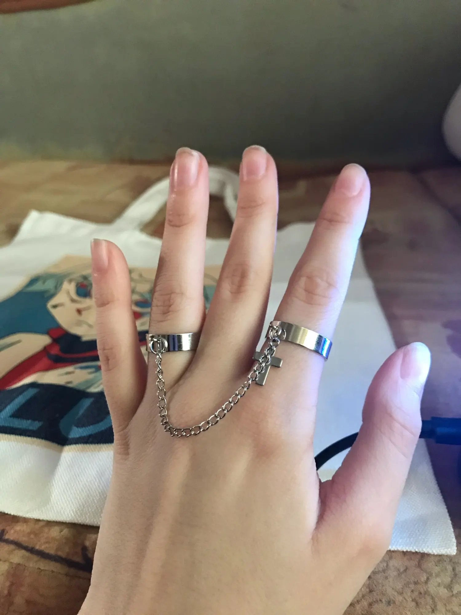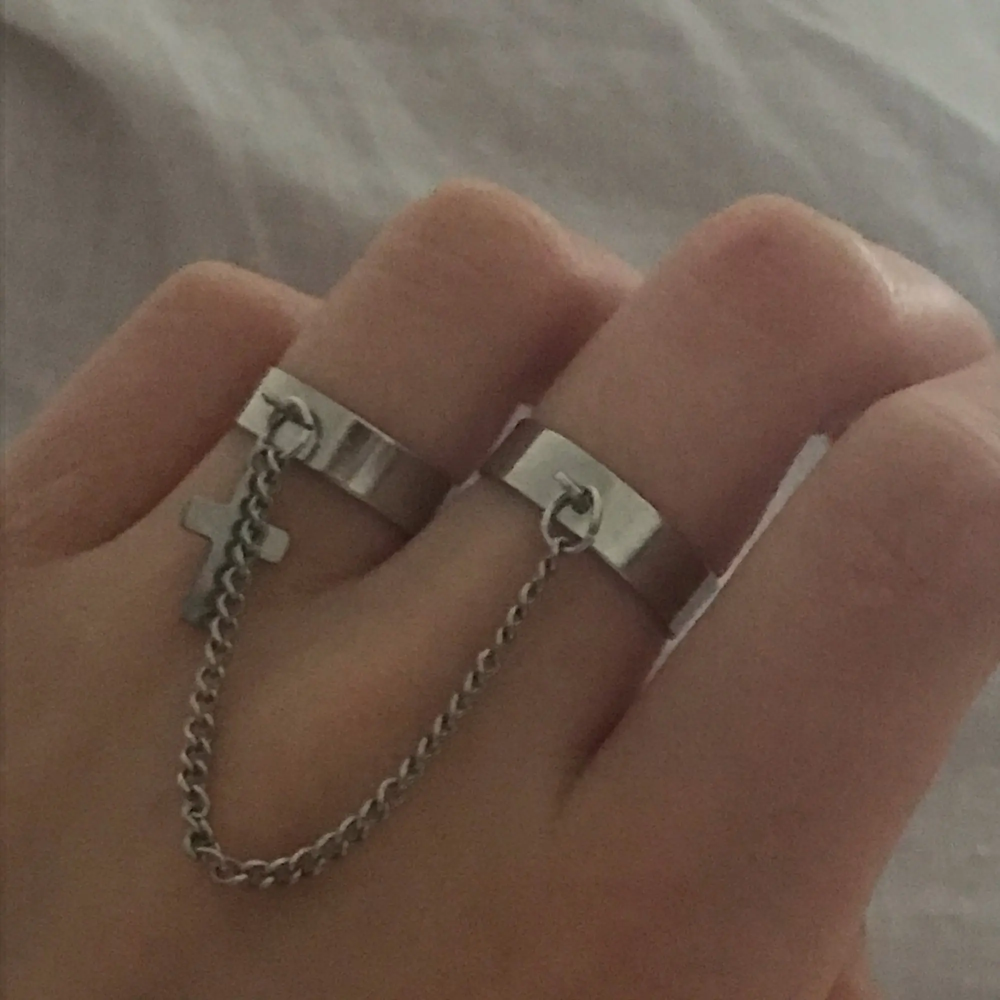 Хорошие кольца, размер изменяется, только цепочка не прям такая как на фото, более редкая и пластиковая, но выглядит ахуенно