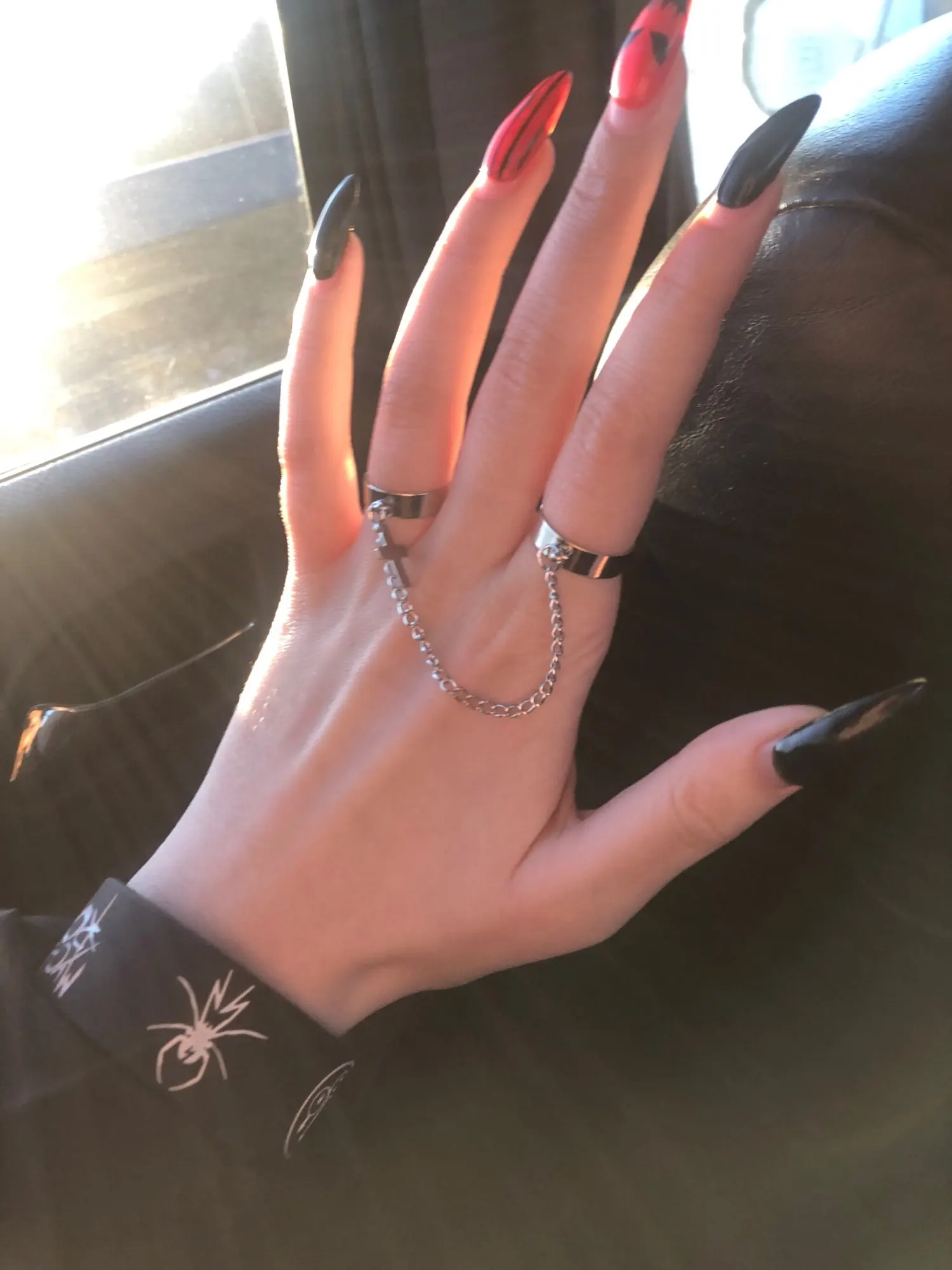 кольца прикольные но минус то что они на пальцах оставляют ржавчину а так даже не плохо смотрится круто всем советую