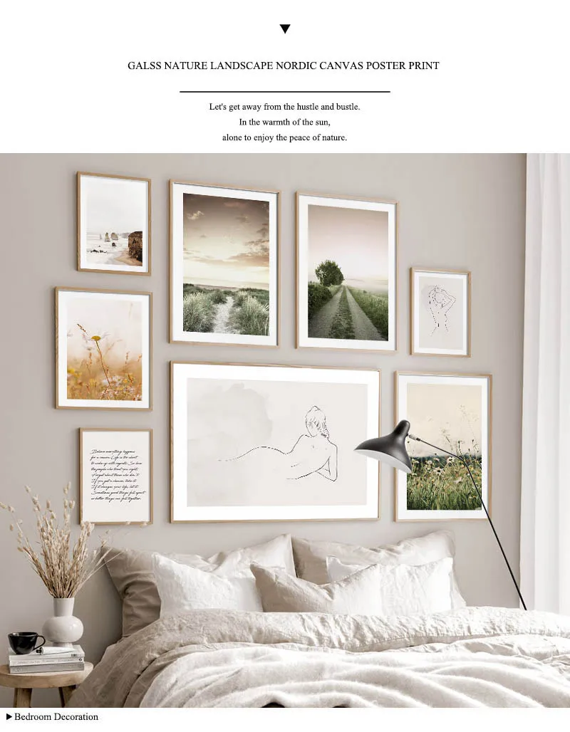 Трава поле Закат Холст скандинавский постер природа настенное искус...