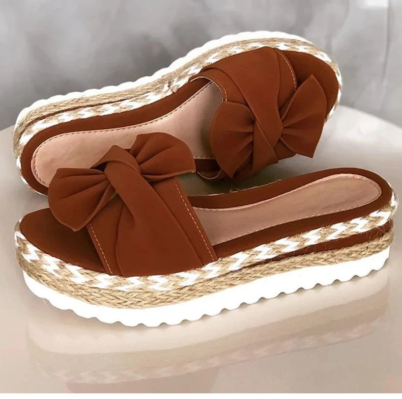 Женские сандалии на платформе, летние сандалии с бантом, тапочки для дома и улицы, шлепанцы, пляжная обувь для женщин, 2022