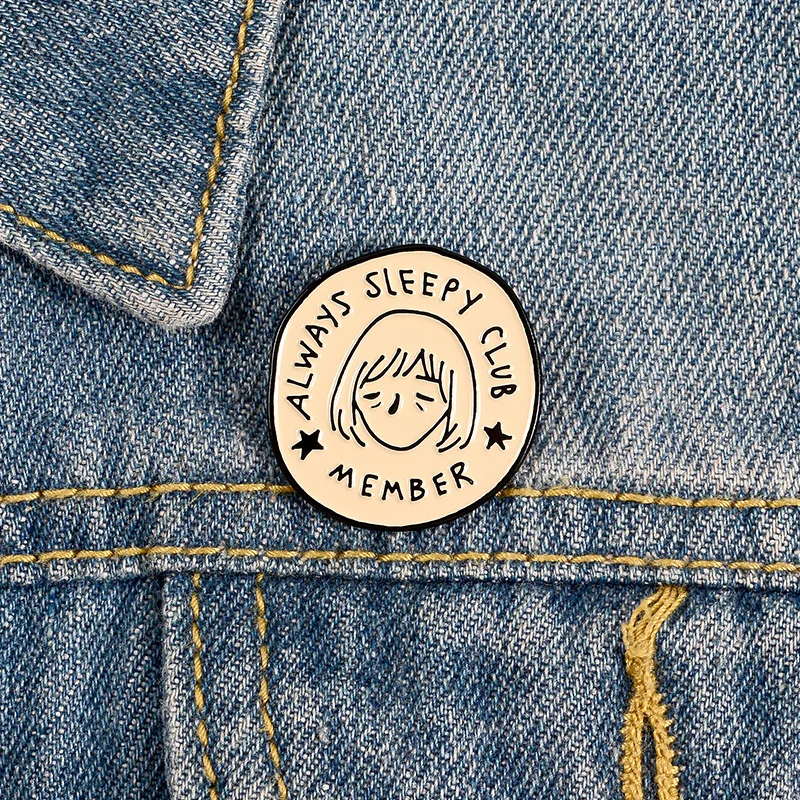Мультфильм милый значок для девушки всегда сонный клуб круглая эмал...