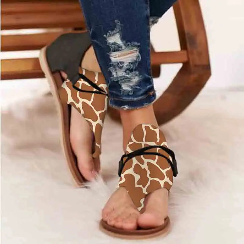 Лидер продаж 2020 года; Женские сандалии с леопардовым принтом; Римские сандалии большого размера; Женские летние туфли на танкетке с противоскользящей подошвой