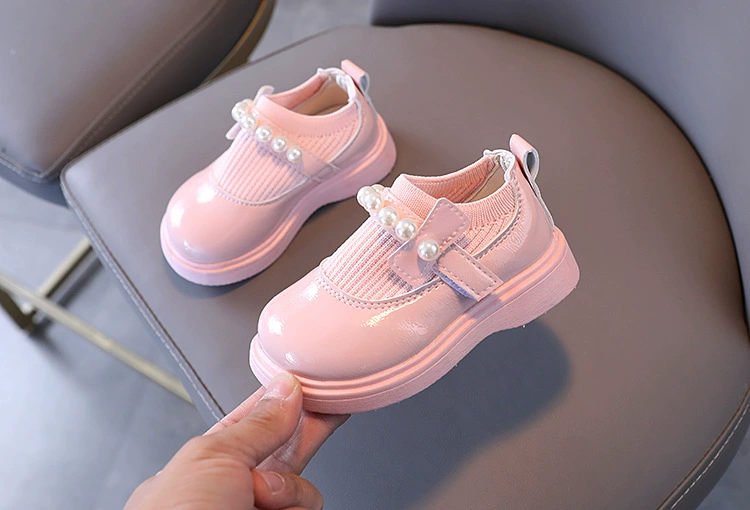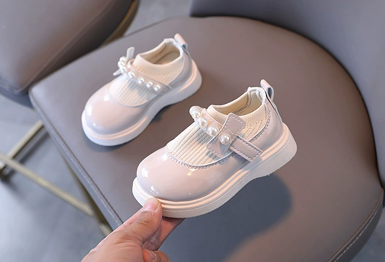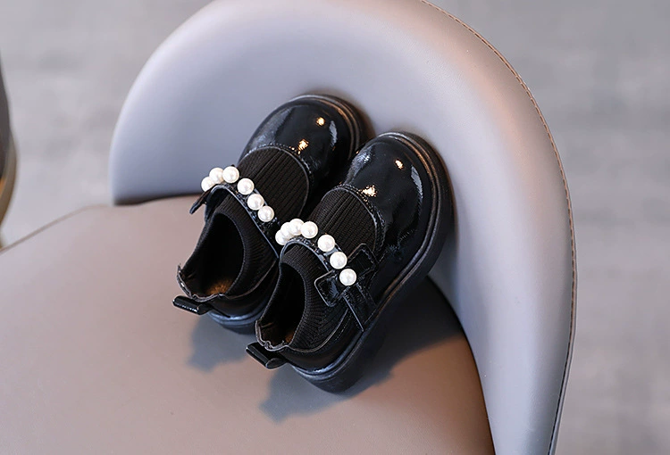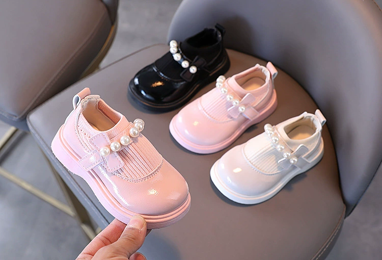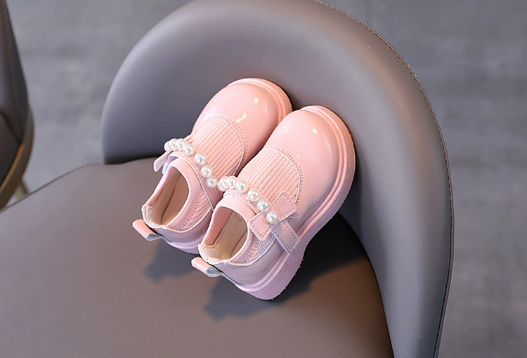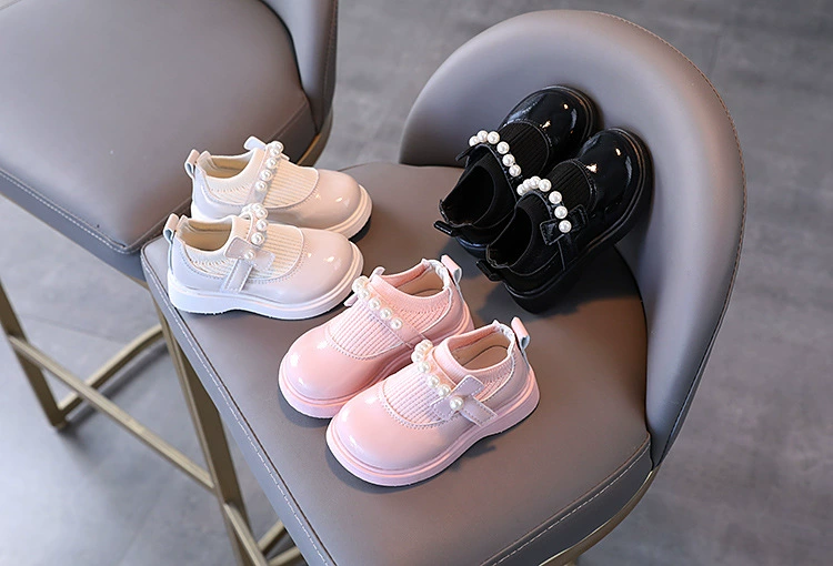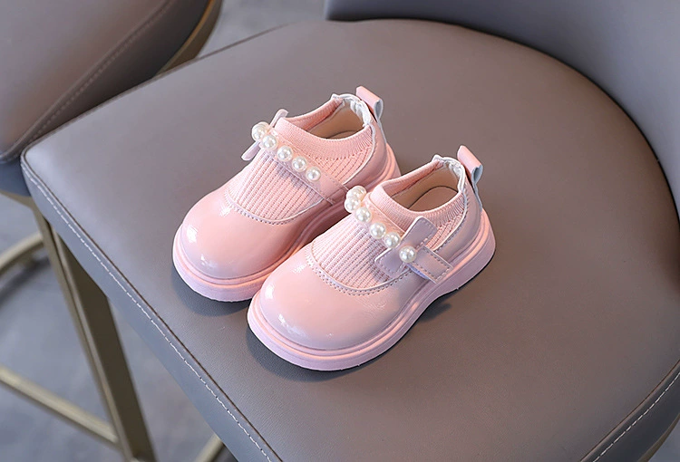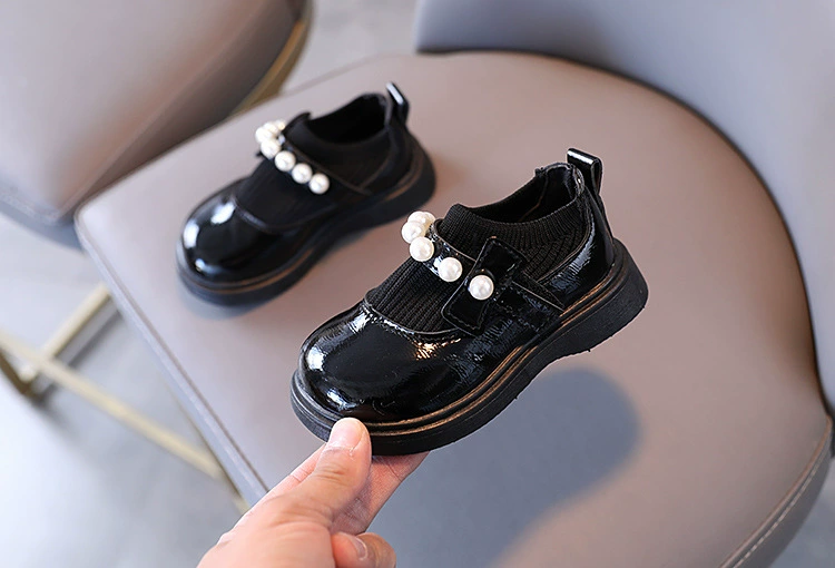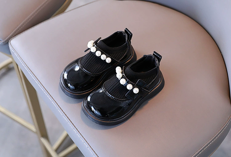 Туфли детские из искусственной кожи, мягкая подошва, дышащие, повседневная обувь принцессы, кожаные, с жемчугом, в британском стиле для девочек