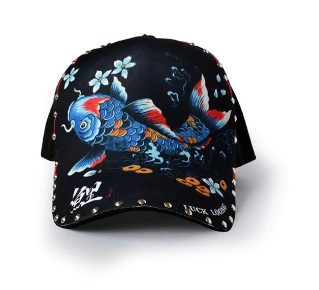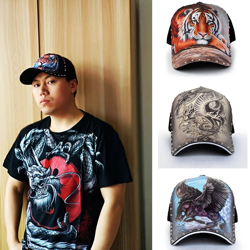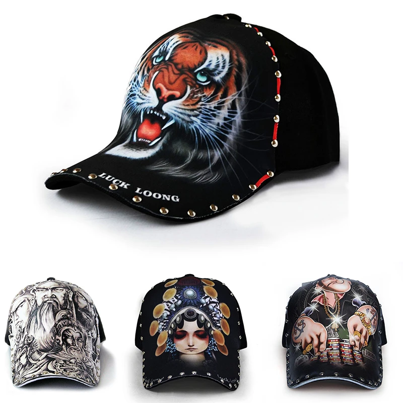 Бейсболка в стиле хип-хоп с заклепками и рисунком иллюстрации для мужчин и женщин