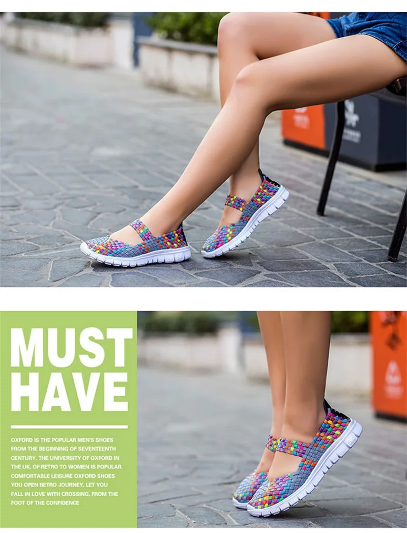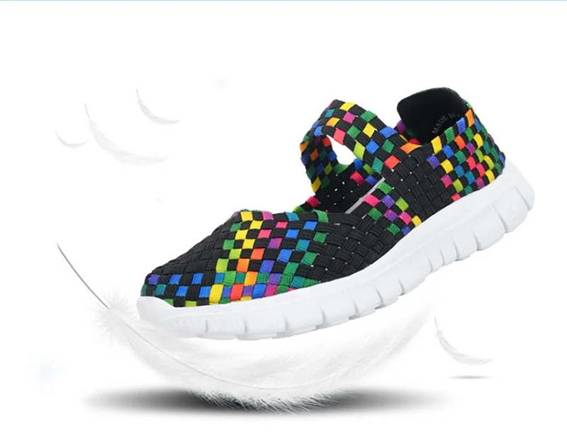 Женские лоферы, повседневная обувь, весенние удобные кроссовки, тканые дышащие туфли на плоской подошве, уличные сандалии без шнуровки на липучке для девочек