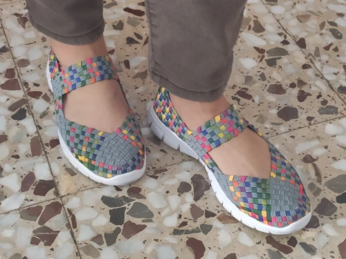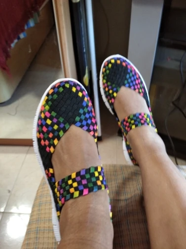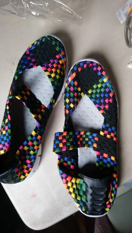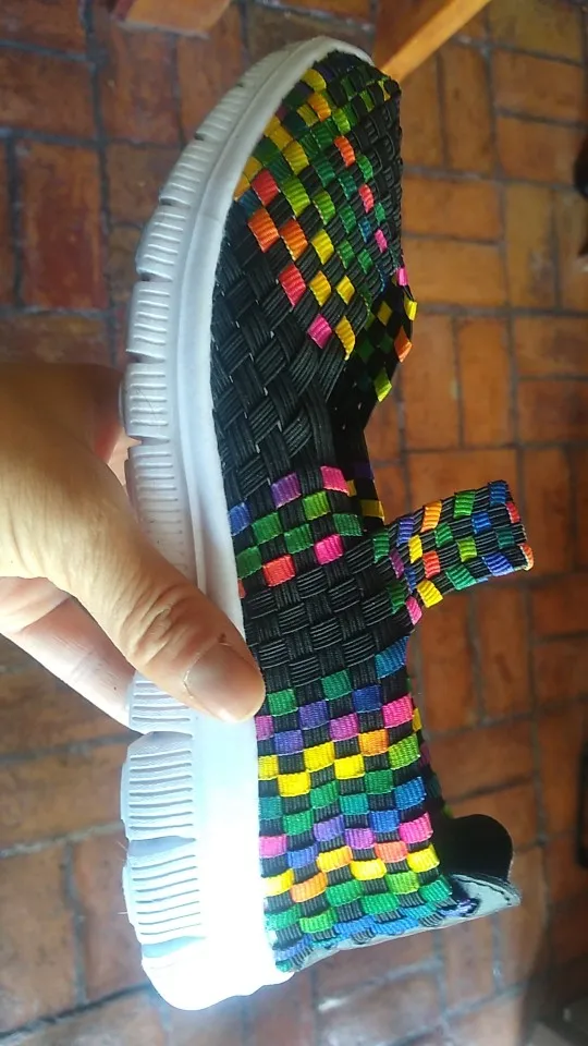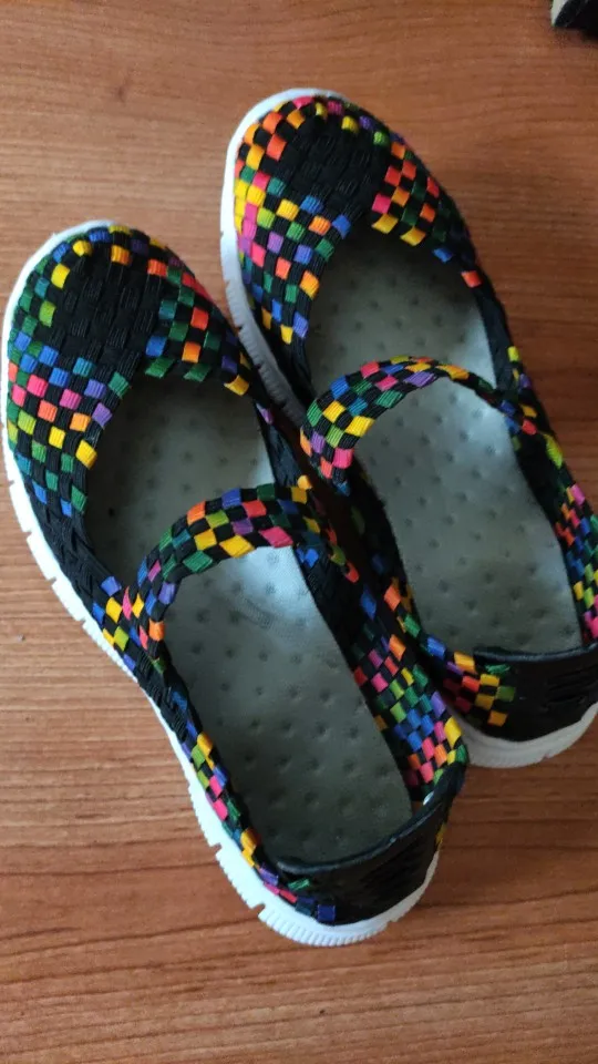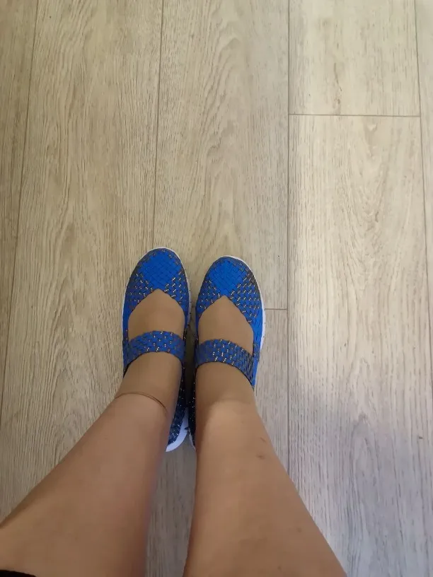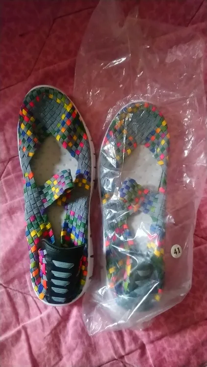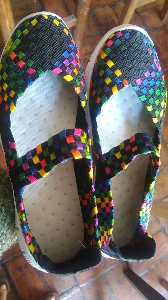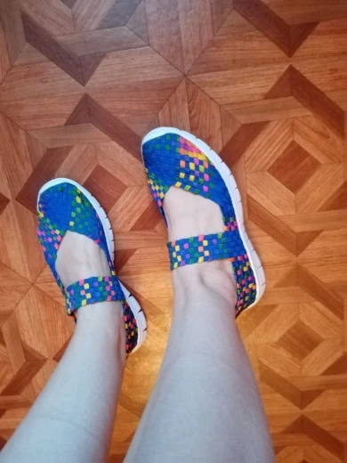 Туфли положили именно той расцветки, что заказала, размер в размер, правда на ноге сидят ОЧЕНЬ плотно, так как моя стопа широкая. Верх сделан из переплетенных резиновых ленточек, поэтому тянется, но не сильно. Думаю, что летом их разношу, чтобы посвободнее были