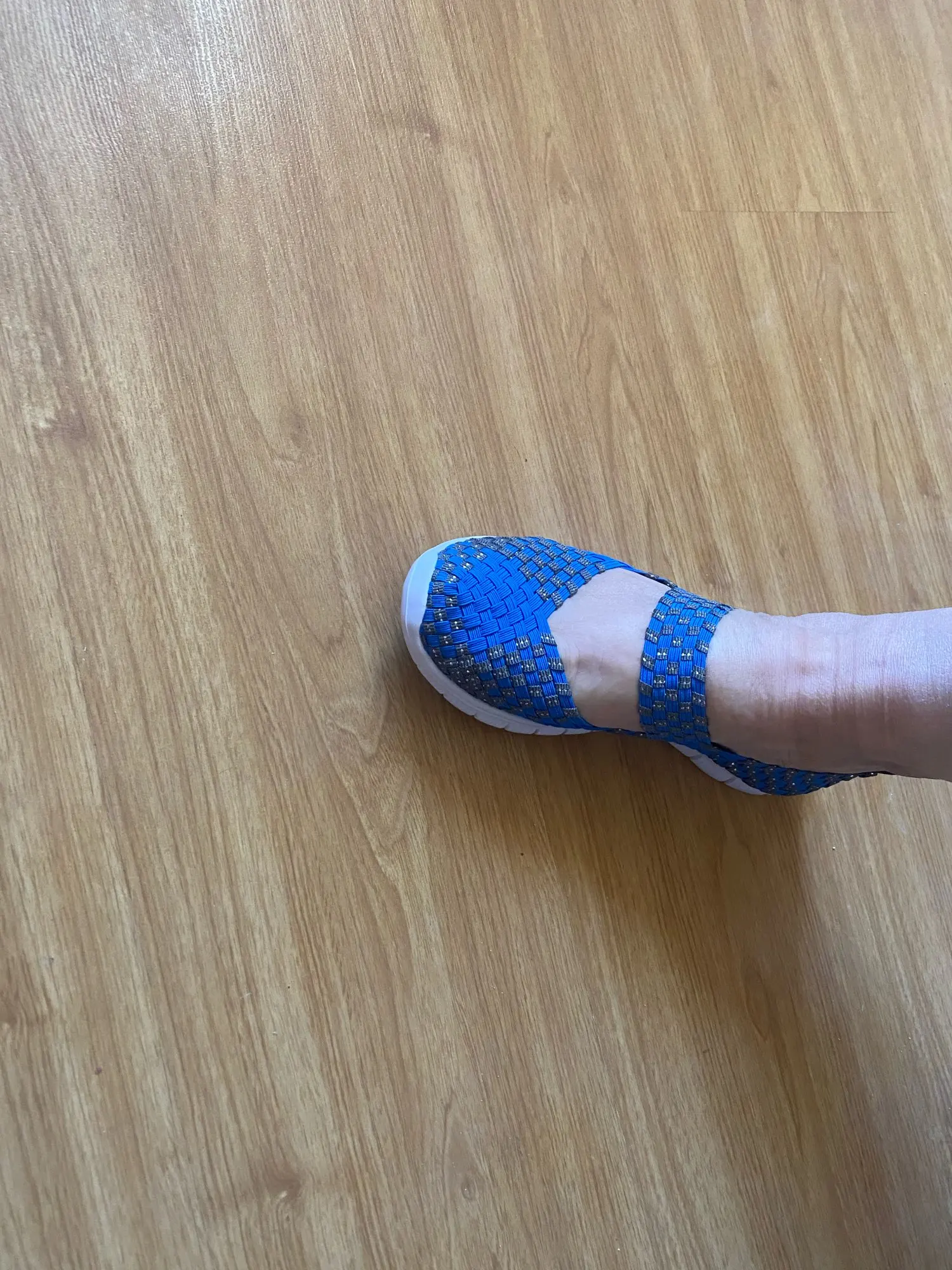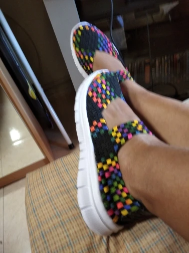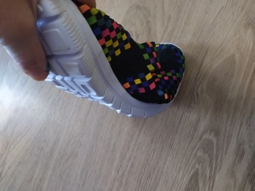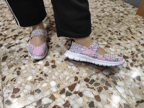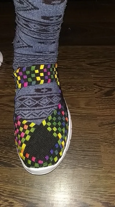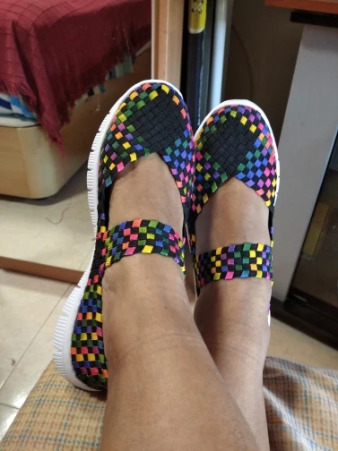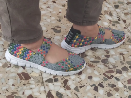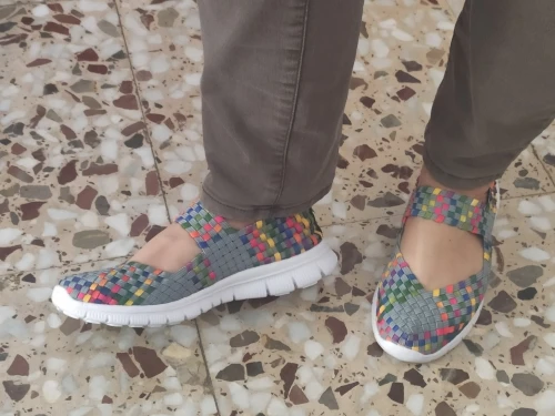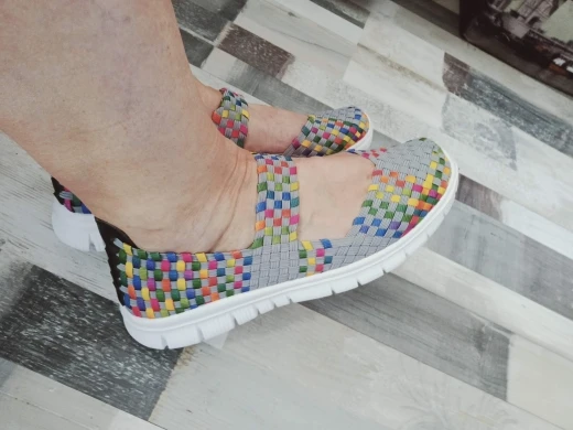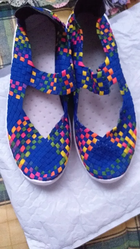 Туфли положили именно той расцветки, что заказала, размер в размер, правда на ноге сидят ОЧЕНЬ плотно, так как моя стопа широкая. Верх сделан из переплетенных резиновых ленточек, поэтому тянется, но не сильно. Думаю, что летом их разношу, чтобы посвободнее были