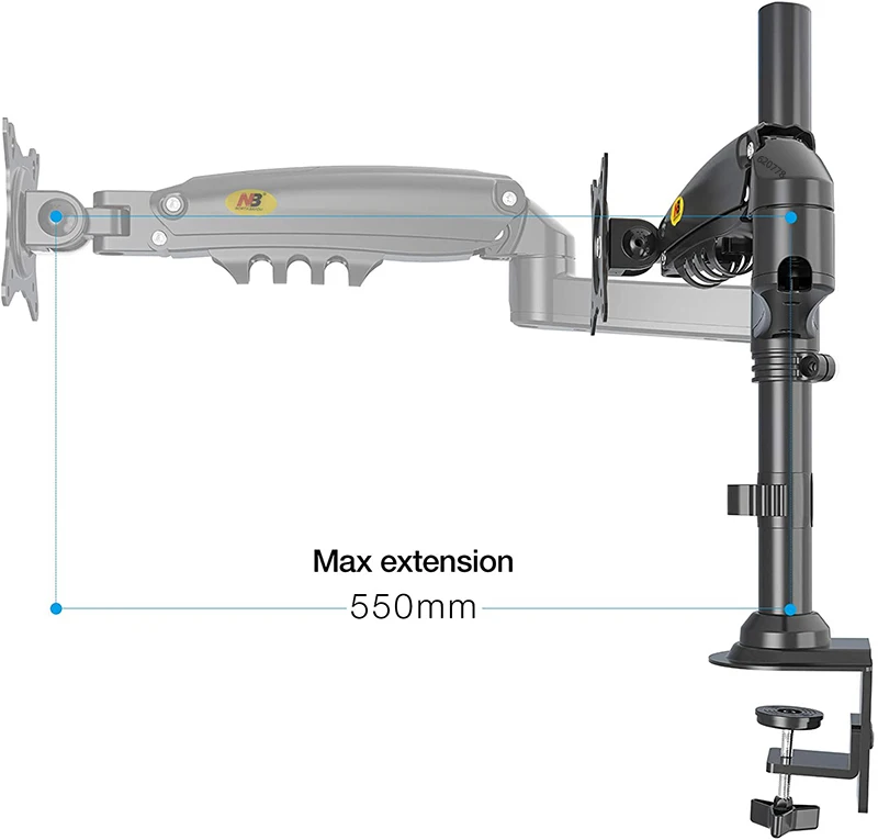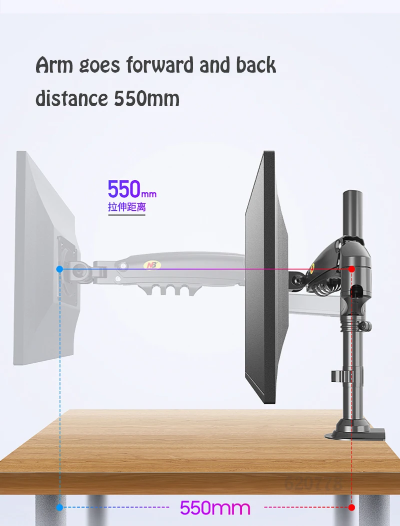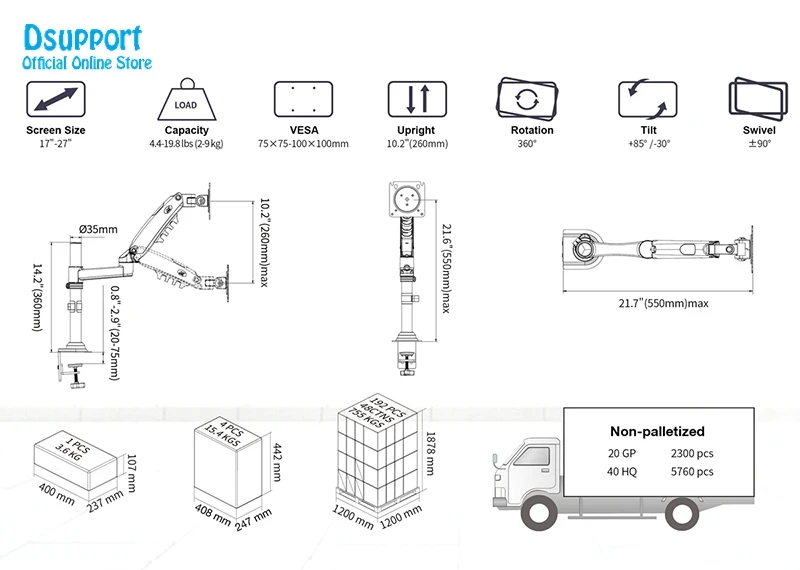 Загрузка: 2,0-9.0кг (4,4-19.8lbs) (Пожалуйста, убедитесь, что вес вашего экрана находится в пределах этого диапазона, или газовая пружинная рукоятка не может работать!)