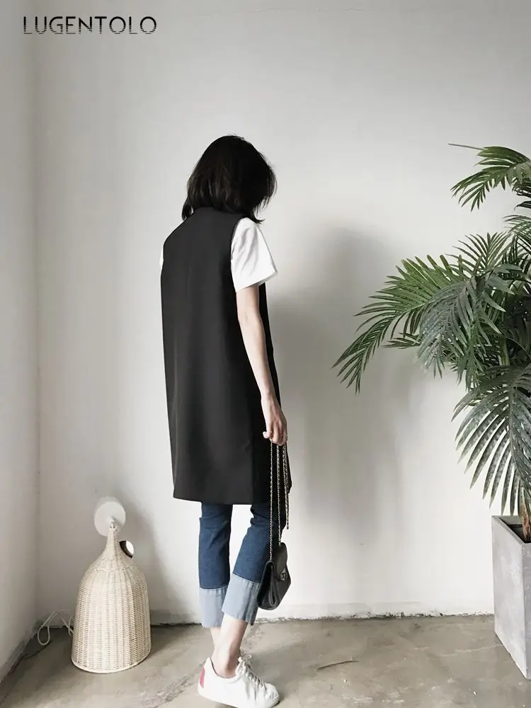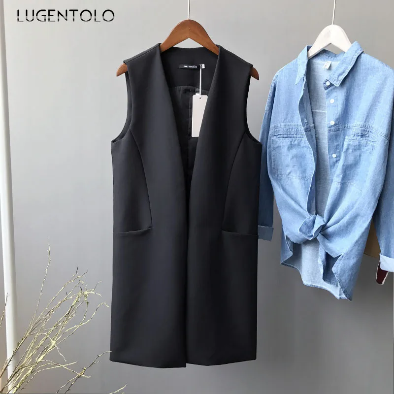 Жилет женский весенне-осенний, без рукавов, с V-образным вырезом
