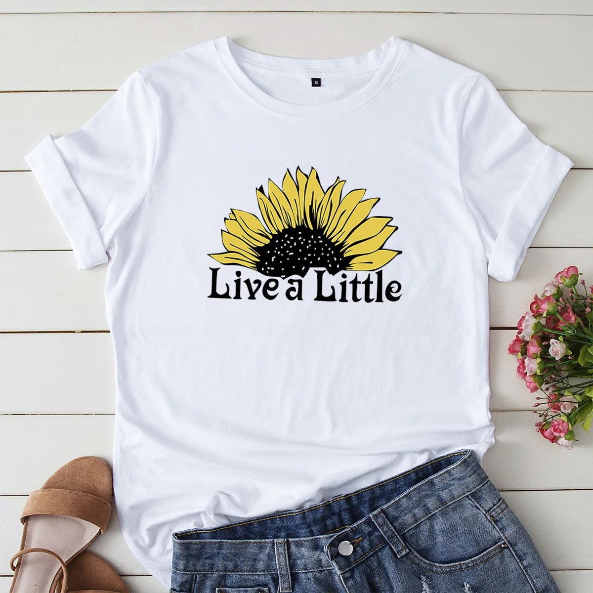 Модная Летняя женская футболка JCGO, универсальная женская футболка из искусственного хлопка с принтом подсолнуха, повседневные женские топы с коротким рукавом, футболка