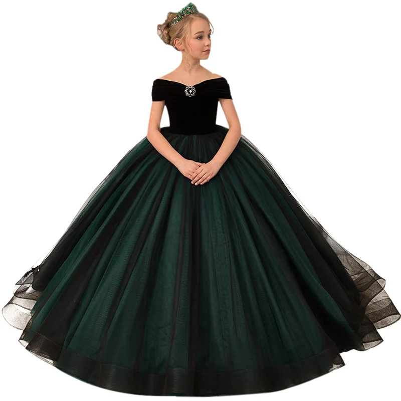 Детские платья для девочек, элегантные длинные платья из зеленого т...