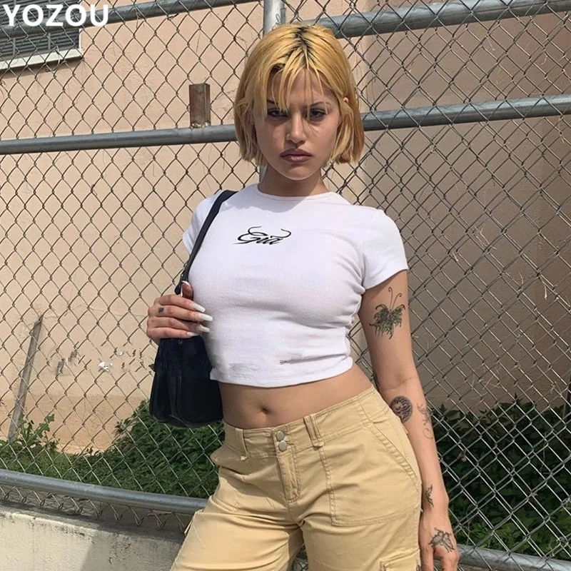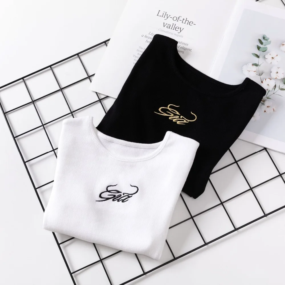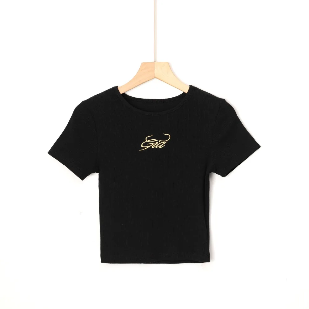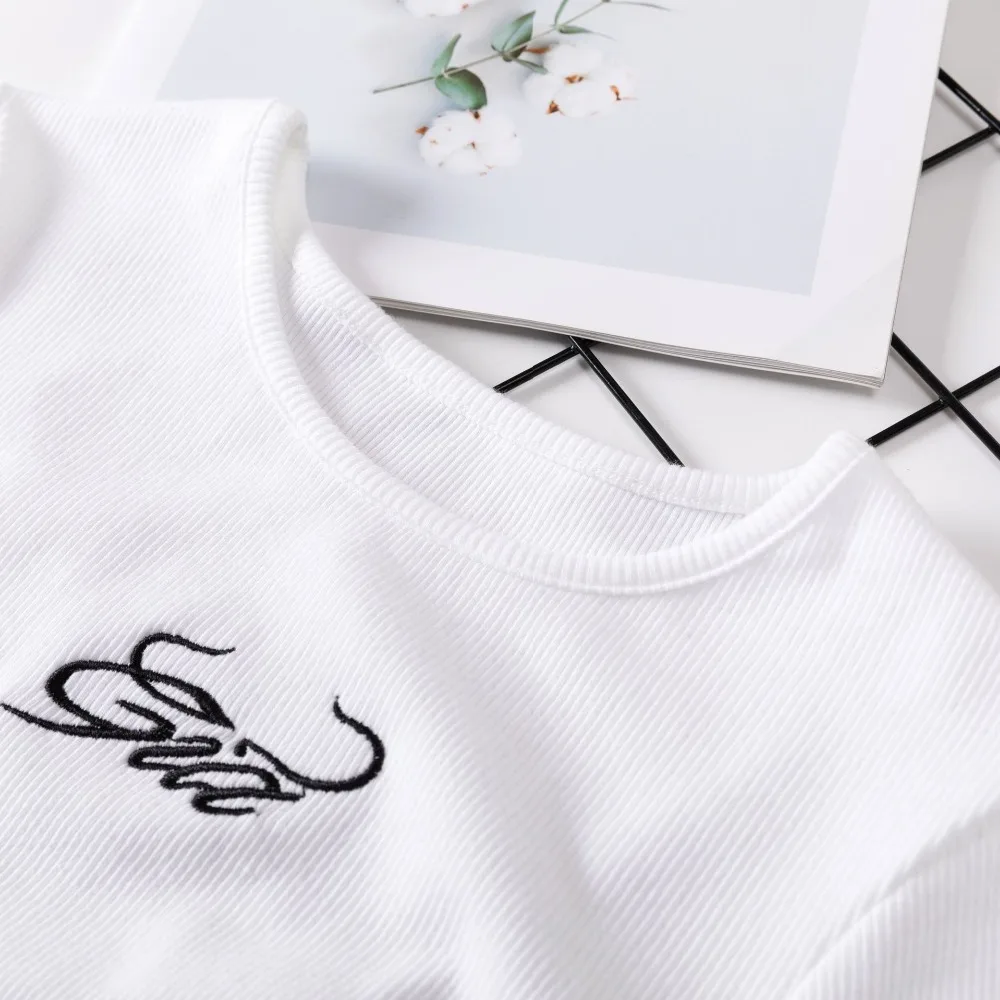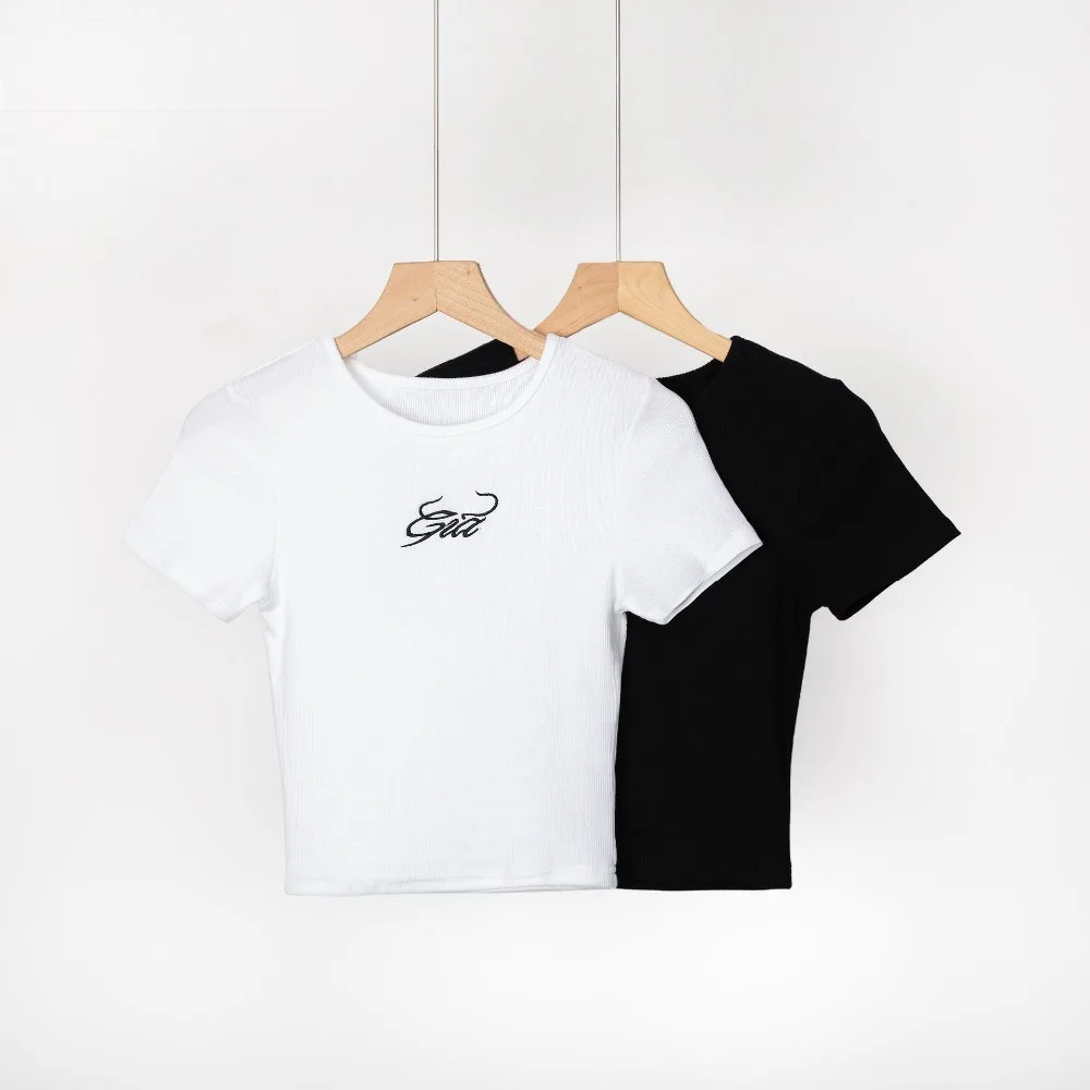 Женская футболка с коротким рукавом, вышивкой и надписью gia, укороченный топ, Винтажная Футболка 90-х, Повседневная однотонная летняя футболка для женщин