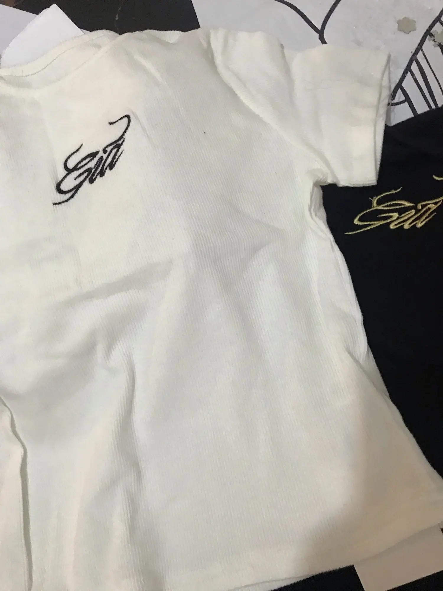 Толстый материал, как на фото. Принт gia более желтый, чем белый tho