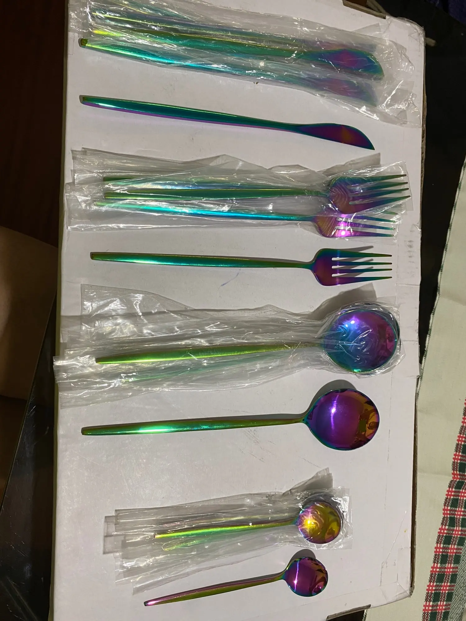 Все очень правильно, столовые приборы красивые, очень хорошие. Я не уверен, сколько времени они прослужат, я планирую использовать их, потому что это то, за что я их купил, но они красивые и очень элегантно украшают стол. Хорошо упаковано, без коробки. Большое спасибо продавцу, желаю вам большого успеха❤