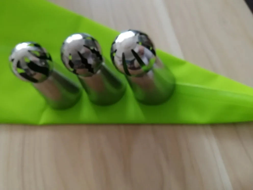 дякую отримала.насадки нормальні а кондитерський мішок не відповідає замовленому набагато менше як замовляла