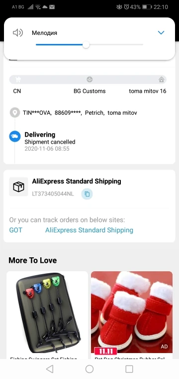 Страна: KZ Доставка: China Post Registered Air Mail 21.11.2020