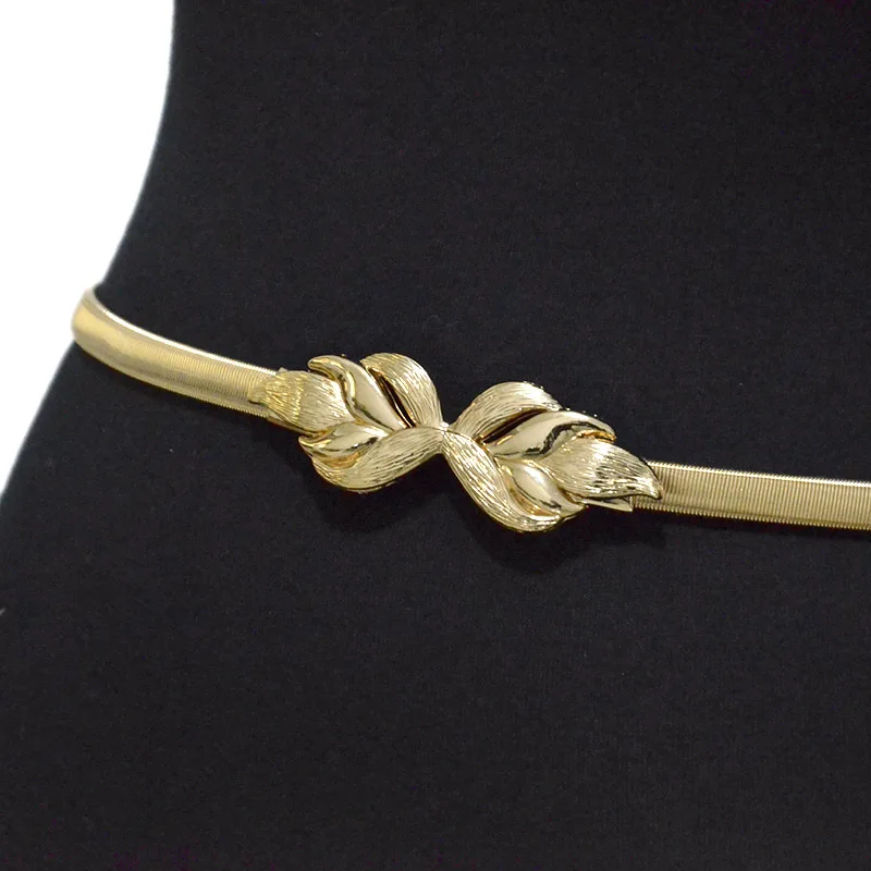 Роскошный дизайн 2020, новинка, Женская металлическая пружина шириной 1 см, металлический корпус с двойной пряжкой лотоса, эластичная цепочка на талию Bg-1121