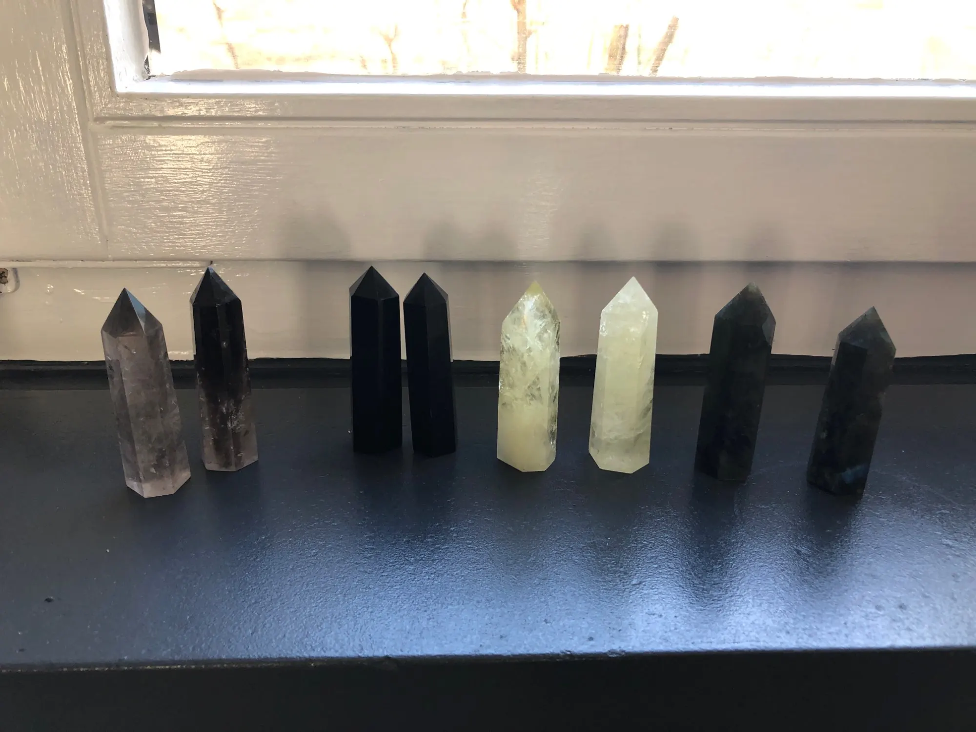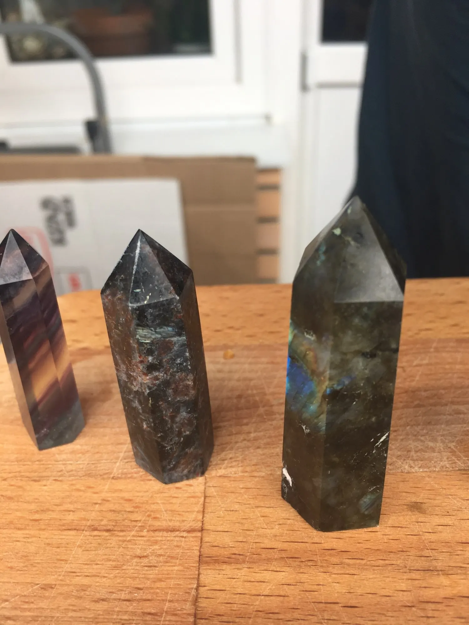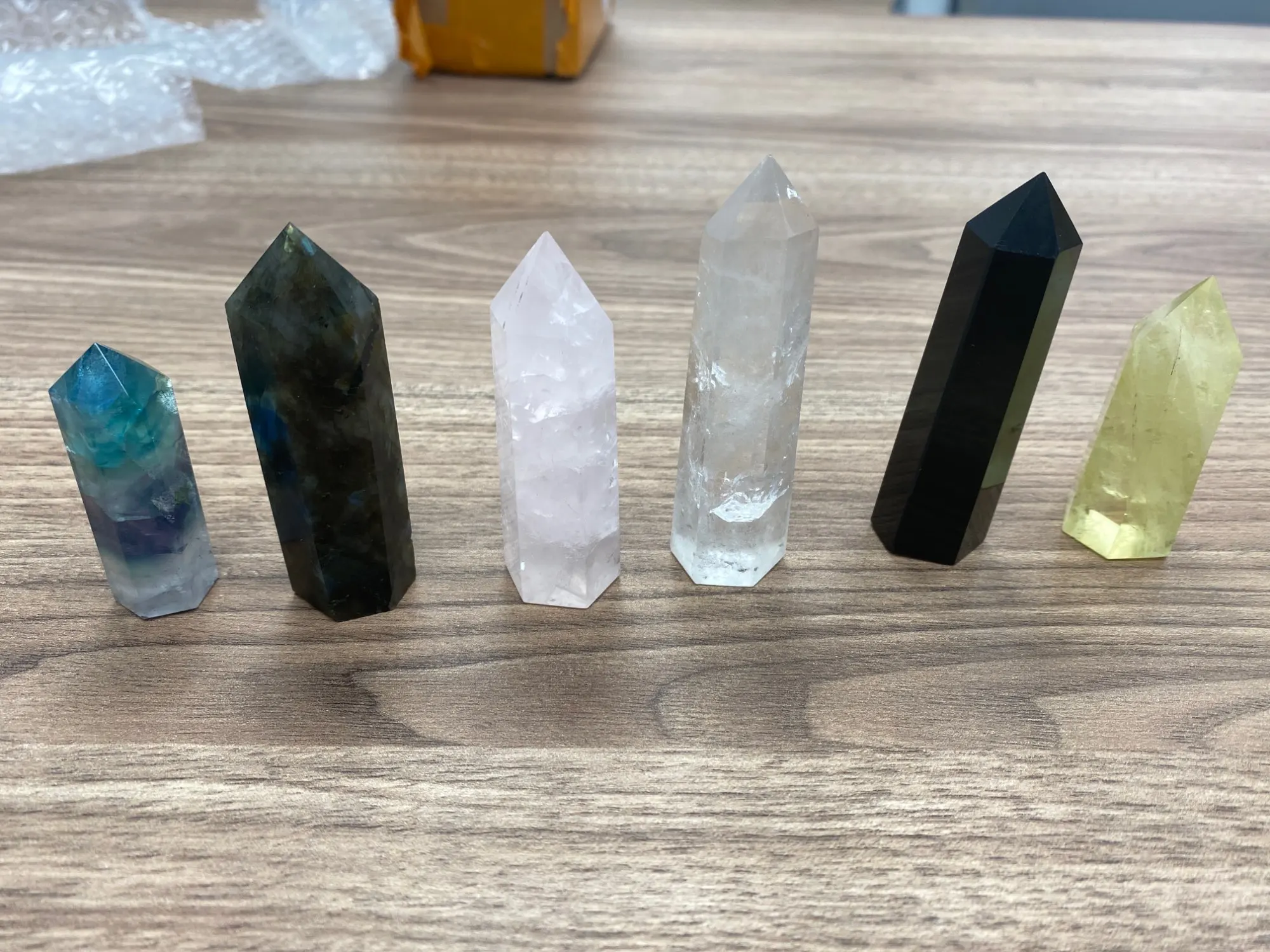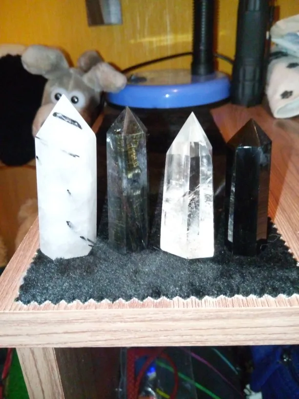 Красивые кристаллы, как на фото. Пришли за месяц в Москву с поправкой на новогодние праздники. Упакованы были хорошо (каждый в свою в пупырку и ещё в коробку) были немного в масле, видимо обрабатывали прям перед отправкой. Салатовые глянцевые, чёрный немного матовый, но с красивым синим отливом. Формы не идеальной все, но этого особо не заметно.