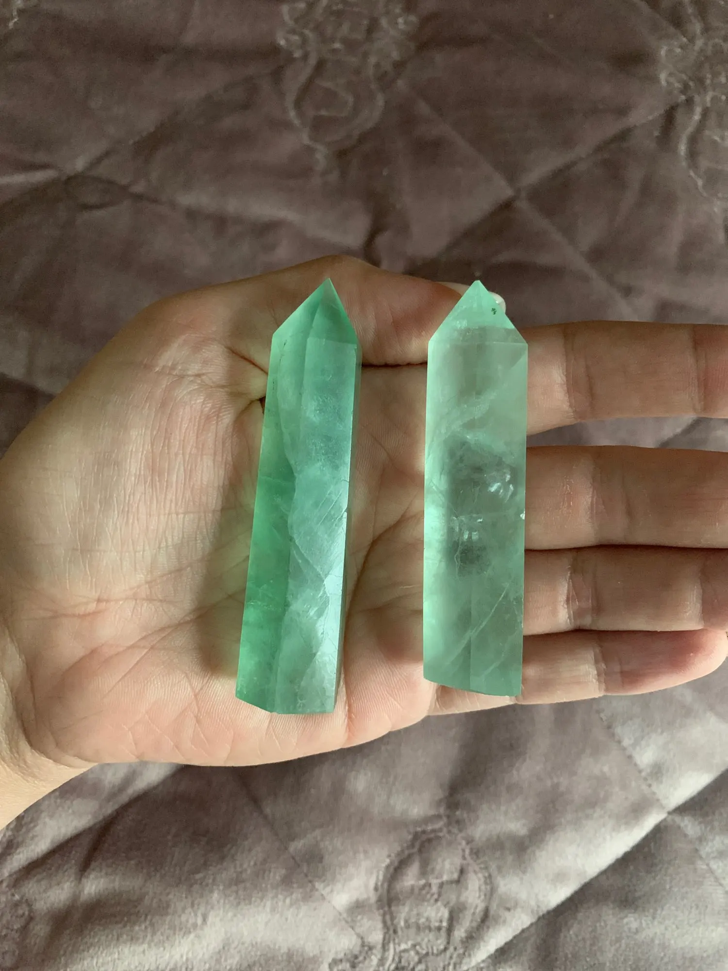 Осталась очень довольна заказом, прекрасный камни, аккуратны изготовлены, если и есть на флюорите небольшие внутренние трещины, то это это абсолютно не критично, и камни в целом смотрятся красиво. Большое Вам спасибо хороший Продавец !