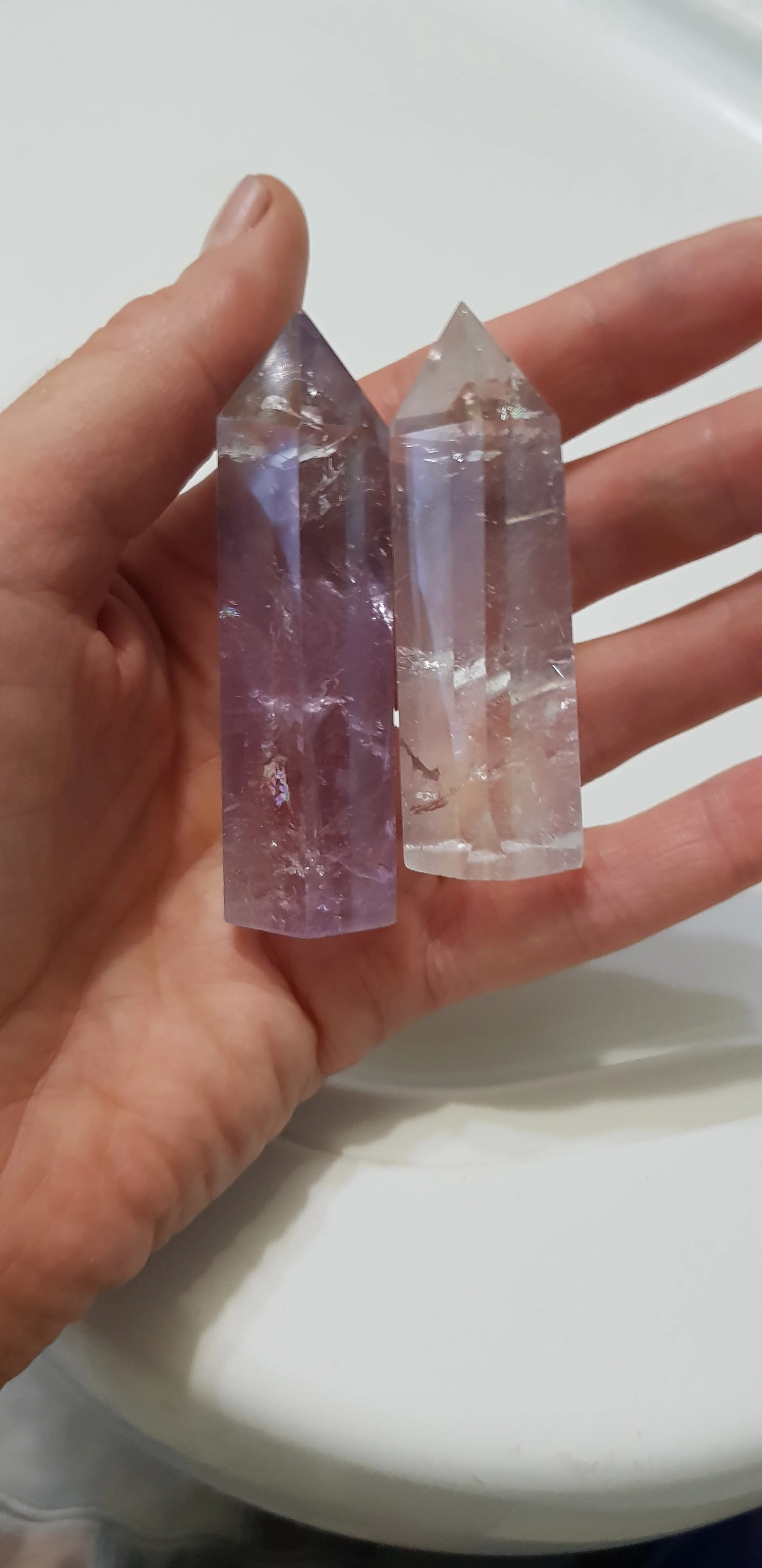 Тяжеленькие, я не совсем разбираюсь в подлинности натуральных камней, но выглядят они здорово. Немного неровные грани, но это не критично. Есть небольшие сколы у основания, внешний вид кристаллов не портят. В целом, я довольна покупкой, доставка в срок