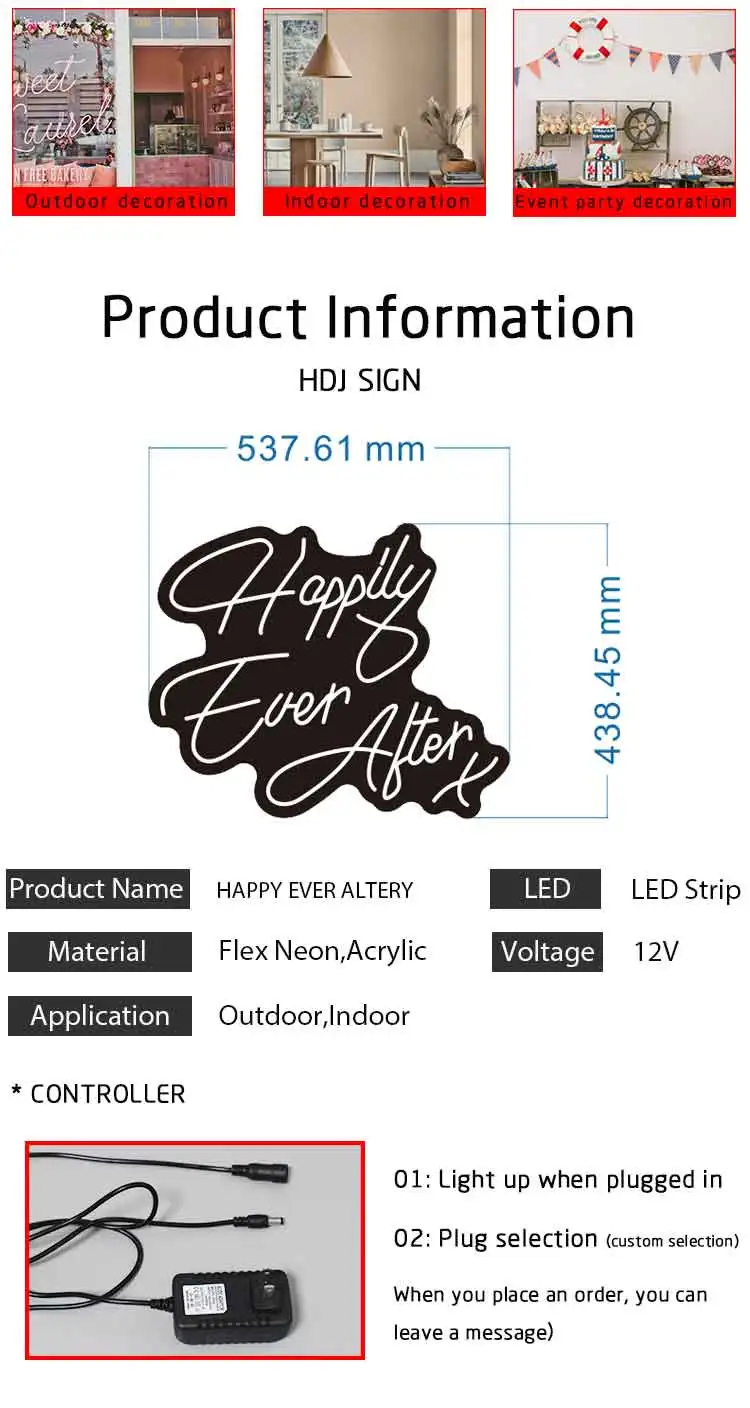 Неоновая вывеска светильник на заказ Led 3D 12V Happy Ever After акриловая стена для девочек украшение для домашней комнаты Ins неоновый Топ
