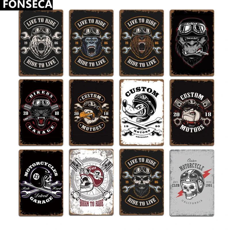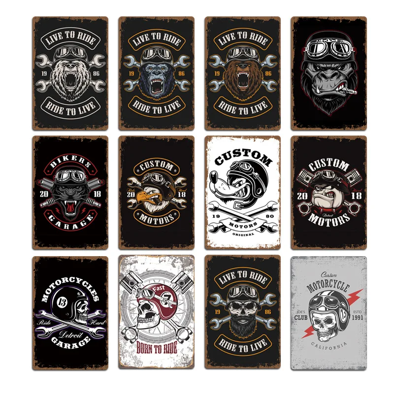 2020 новые мотоциклетные знаки черепа волка металлические таблички Украшение на стену паба клуба винтажные металлические жестяные знаки Декор для дома гаража художественные плакаты